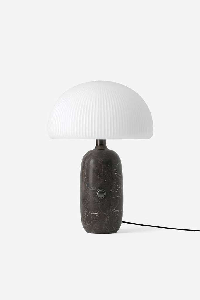 Den lille bordlampa fra Vipp er perfekt for å gi dekorativ belysning i for eksempel stua eller soverommet. En holdbar LED-pære er skjult under en skjerm av trelags opalglass, og gir et stemningsfylt lys. Sylinderfoten har grå eller hvite marmordetaljer samt en dimmer, bryter og en stoffbekledd ledning.