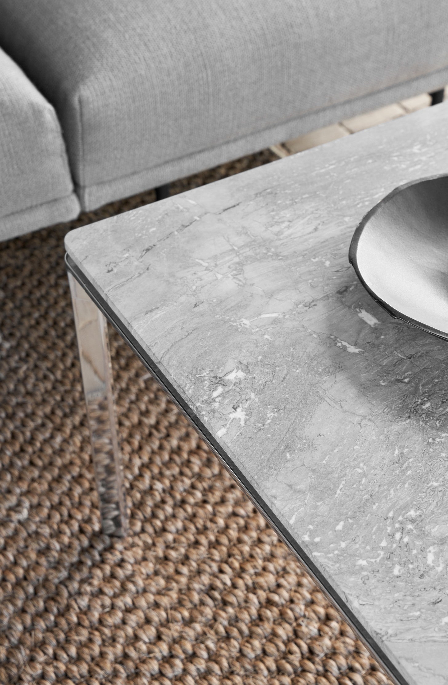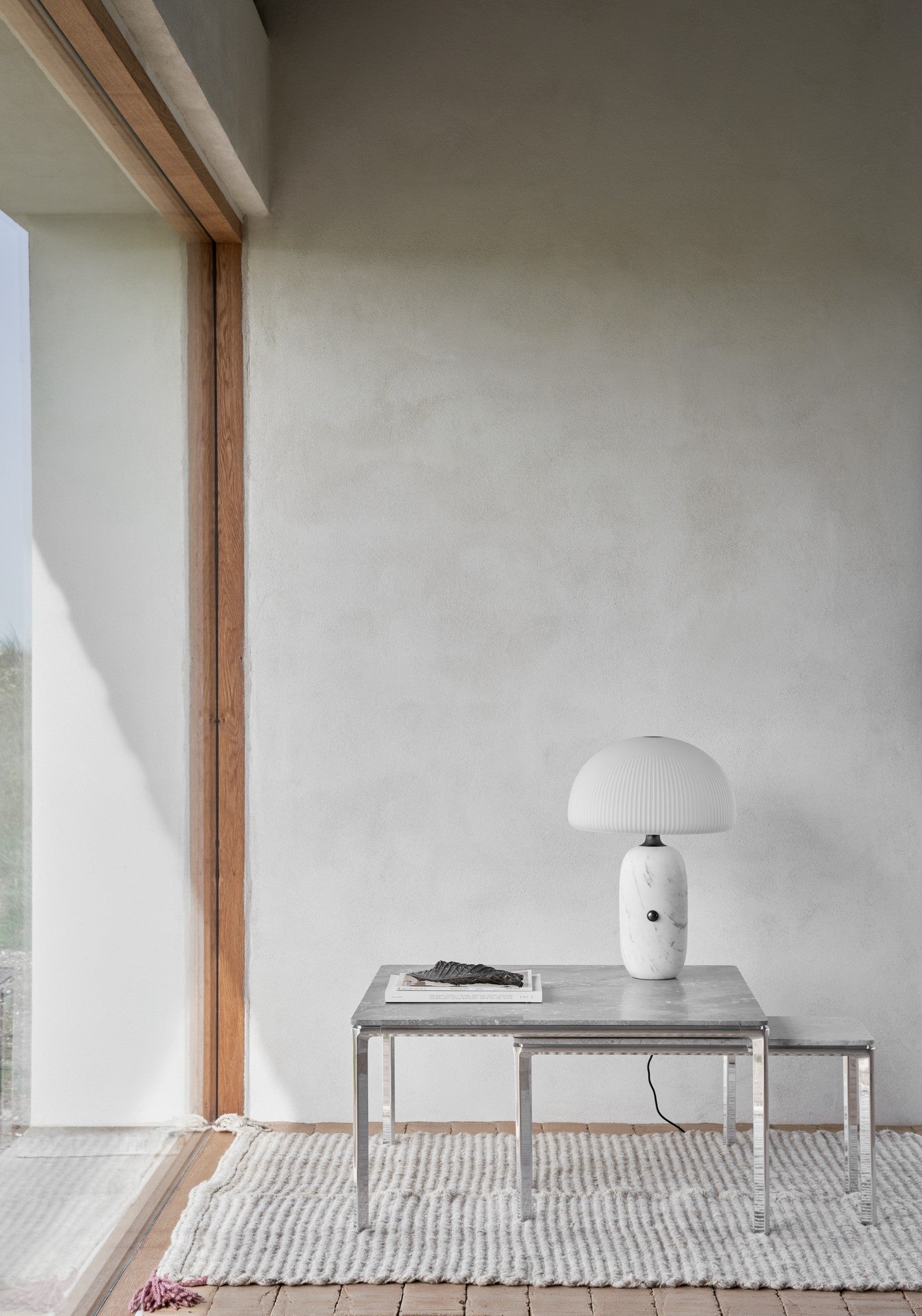Vipp sofabord er et allsidig bord til stuen. Dette bordet er også tilgjengelig i en større versjon, og har en trebent ramme av svart pulverlakkert aluminium og en bordplate av enten polert marmor eller mørk eik.