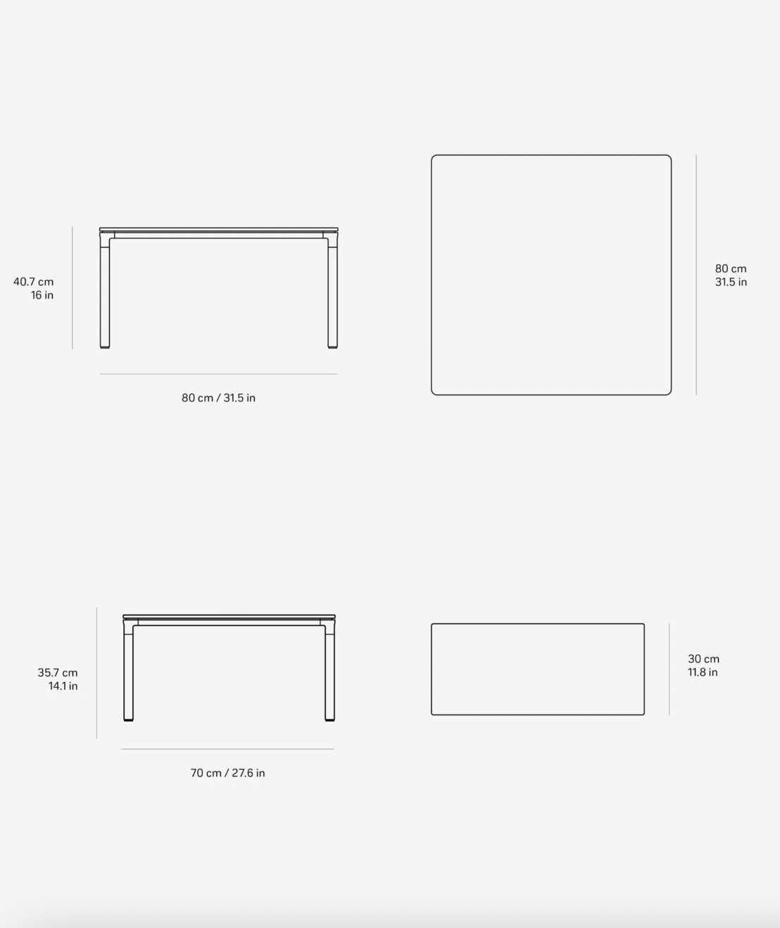 Vipp427 Salongbord firkantet, 80x80cm, havgrå
