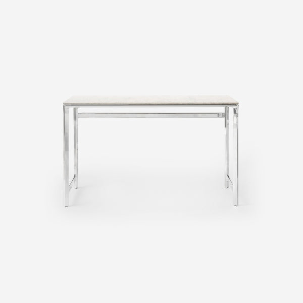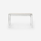 Vipp fortsetter sin reise med naturlig aluminium ved å introdusere et nytt hjemmekontorbord laget av rå aluminium og marmor. Designet er laget for å kunne sees fra alle vinkler, enten det er frittstående eller plassert inntil en vegg, og tilfører materialer av høy kvalitet og raffinerte detaljer til ethvert arbeidsområde. Skrivebordet passer perfekt sammen med Vipp Swivel-stolen, og har en polert aluminiumsramme og ledd som speiler de som finnes på stolen, noe som skaper et helhetlig utseende når stolen glir under bordet.
