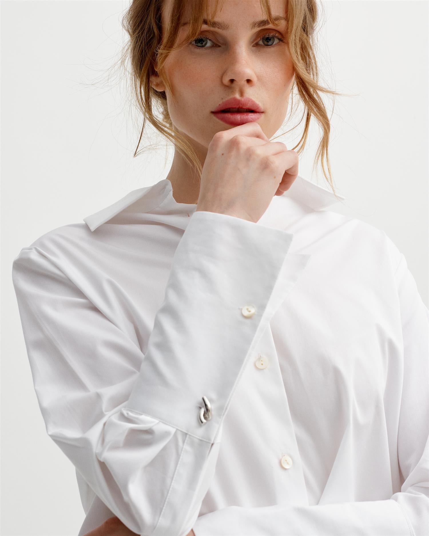 En tidløs hvit skjorte som oser av ren eleganse. Madrid Cufflink Shirt er sydd i 100% bomull og imponerer med brede mansjetter som gir et moderne uttrykk til den klassiske looken. Skjorten har en klassisk krage og knappelukking foran, mens den svakt A-formede silhuetten, litt lengre bak enn foran, skaper en flatterende, sofistikert profil som følger kroppen på en naturlig måte. Dette er et nøkkelplagg i basegarderoben – like perfekt med dressbukser for en polert kontorlook som med jeans for en avslappet, kul stil til fest.