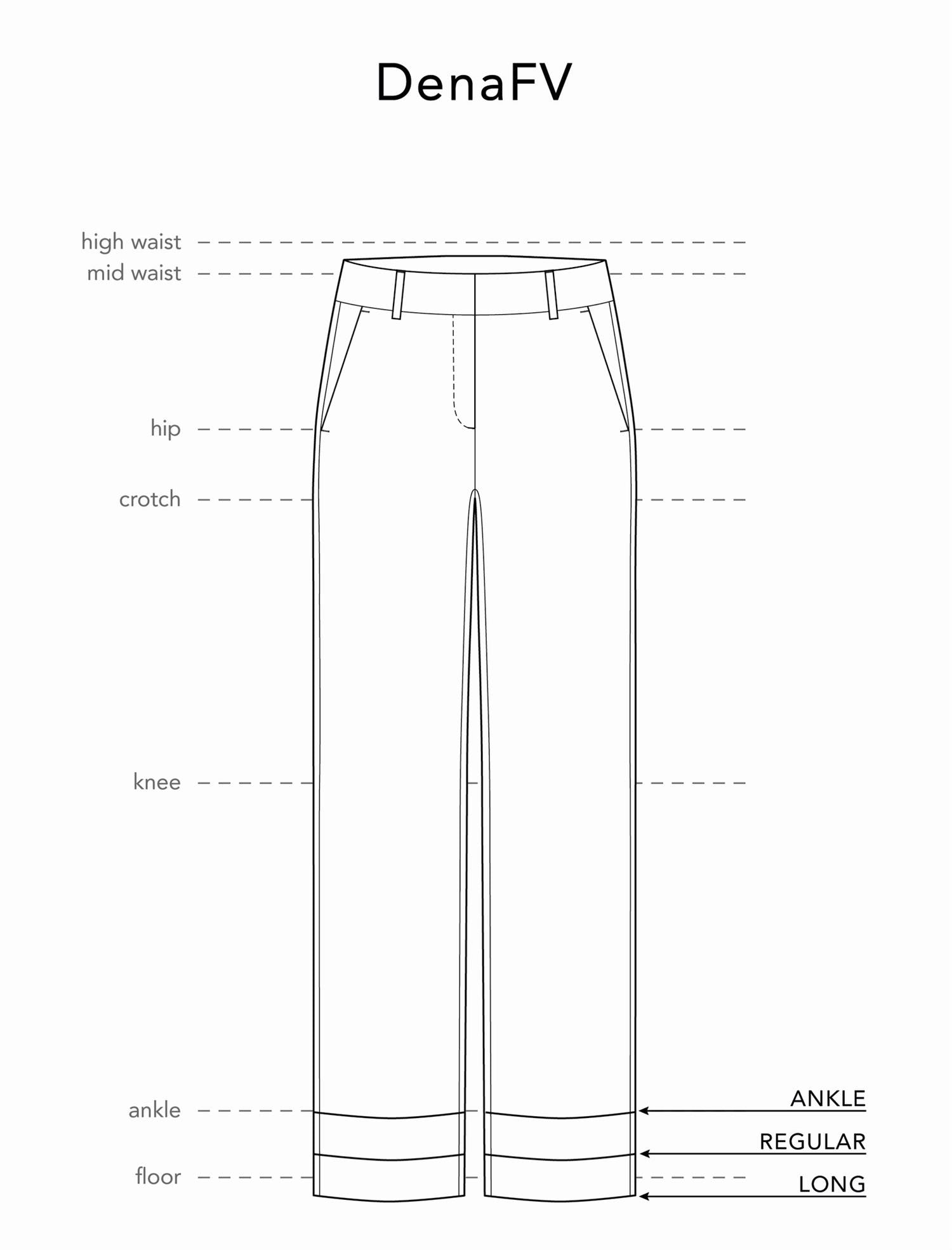 Dena 285 er bukser med vid passform laget av elegant ensvevet stoff som drapererer til gulvet i en klassisk design. Med midje midje formet vi dem for å fremheve hoftene dine og la stoffet drapere rundt bena, og understreker Denas luksuriøse uttrykk. En elegant formet linning følger trofast krumningen av midjen din – og beveger seg med deg.