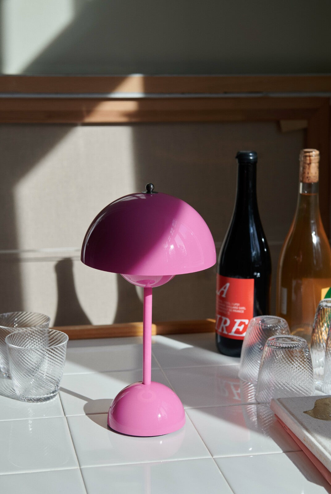 Flowerpot er en serie eksklusive oppladbare bordlamper fra &Tradition. Perfekt på nattbordet, i bokhyllen eller på balkongen med opptil 10 timers batteritid og tre lysstyrkenivåer. Lampene er også værbestandig med IP44-sertifisering, ideell for utendørs bruk på verandaen.