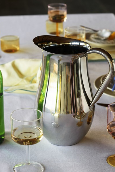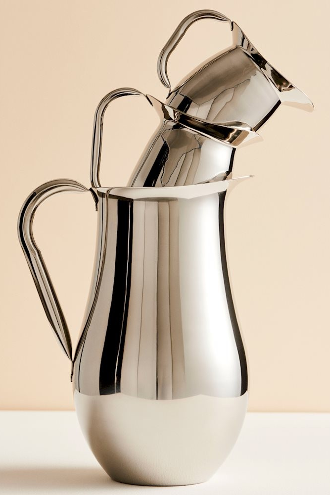 Med et slankt håndtak og en tut med bred kant for enkel helling, tilbyr HAYs Indian Steel Pitcher en ryddig, men funksjonell design. Laget i India av rustfritt stål med en skinnende sølvoverflate.Størrelse H25 x B18 x L18
