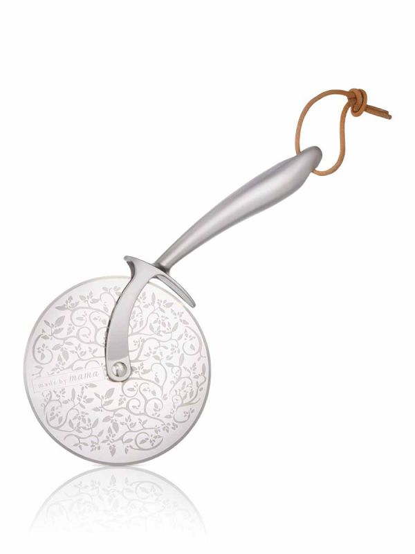 Kutt pizzaen din med stil! Nå er vårt pizzasett komplettert med vårt eget design av det optimale pizzahjulet. Den er laget av rustfritt stål og tåler oppvaskmaskin. Størrelsen på hjulet gjør carving lettere, og robustheten til de to armene som holder hjulet sikrer lang levetid. En perfekt gaveide for alle som elsker pizza.