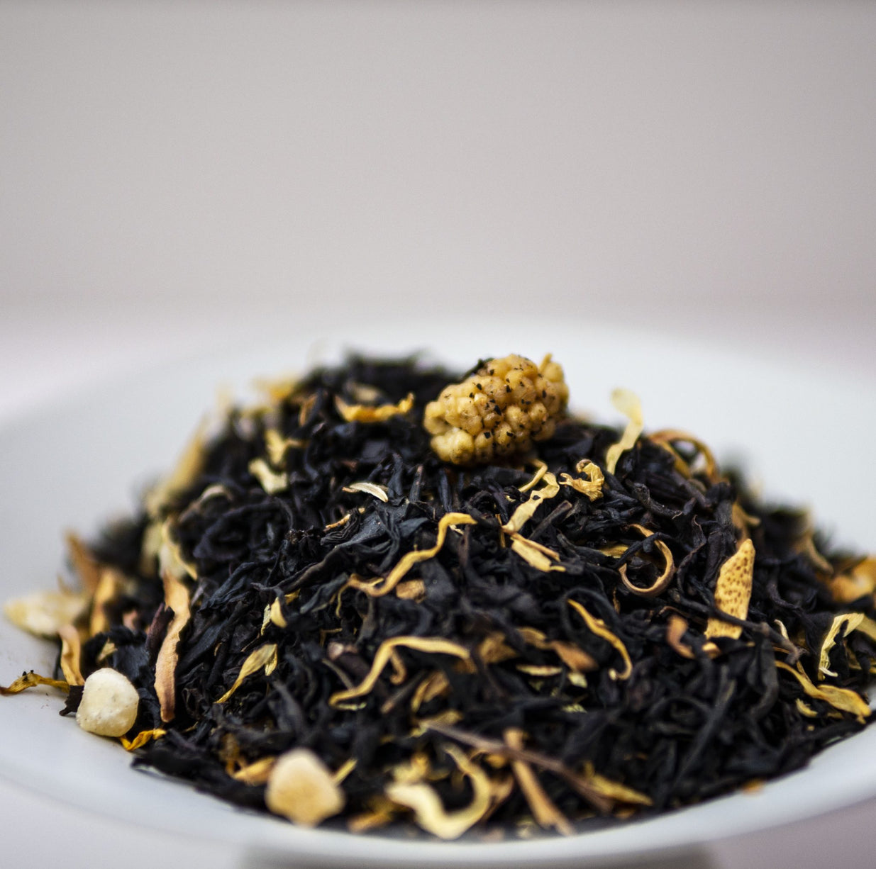 Black Mulberry, eller svart morbær, har en søt og saftig smak med en rik fruktighet. Den minner om en kombinasjon av bær, med en fyldigere og mer kompleks smak enn mange andre frukter. Når det brukes i te, gir svart morbær en naturlig sødme og en lett syrlig undertone som bidrar til en balansert og forfriskende opplevelse.