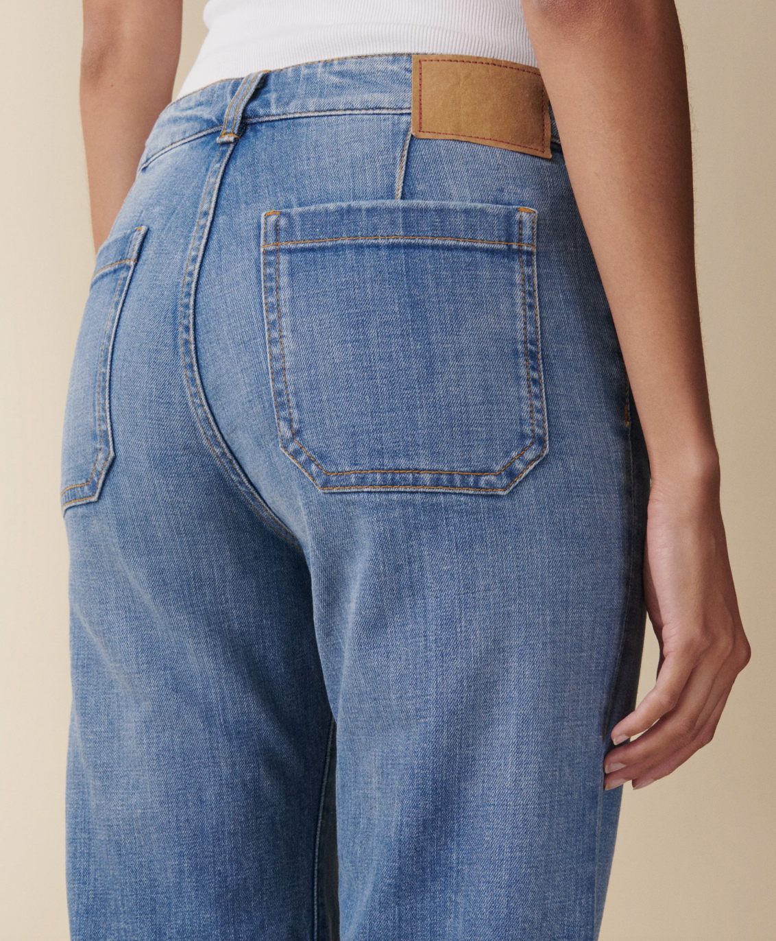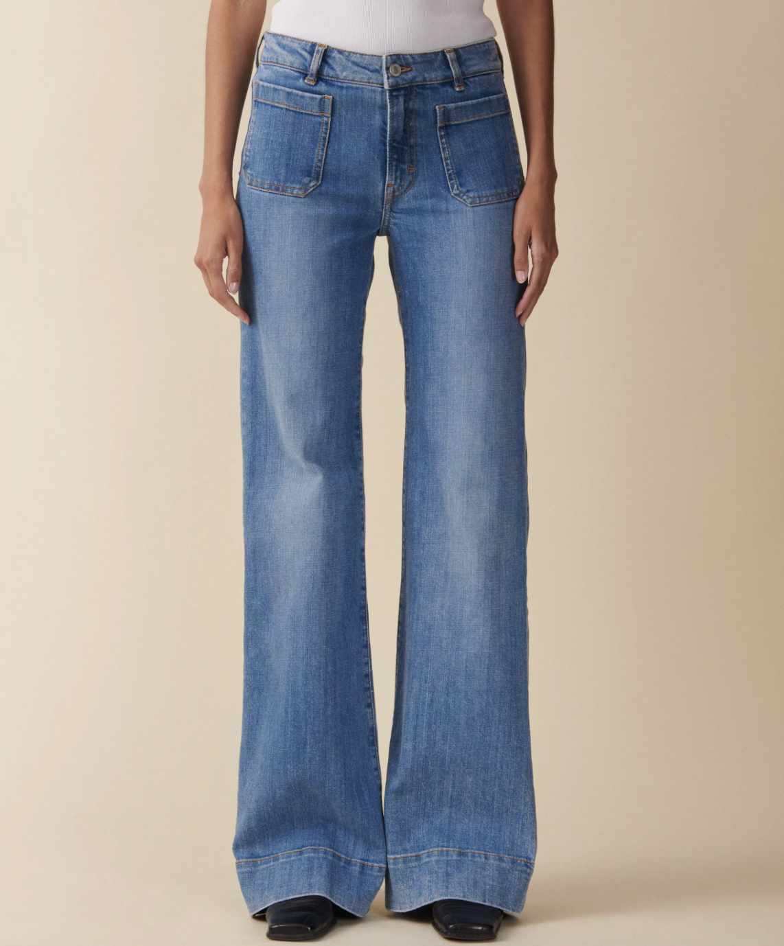 'St Monica Low' is a low-rise version of our iconic fit, which look to sailor archives of the late 1960s with its patch pockets, flares and wide hemlines.Model is 175 cm/5'9” and wears waist 26 and length 34.True to size.