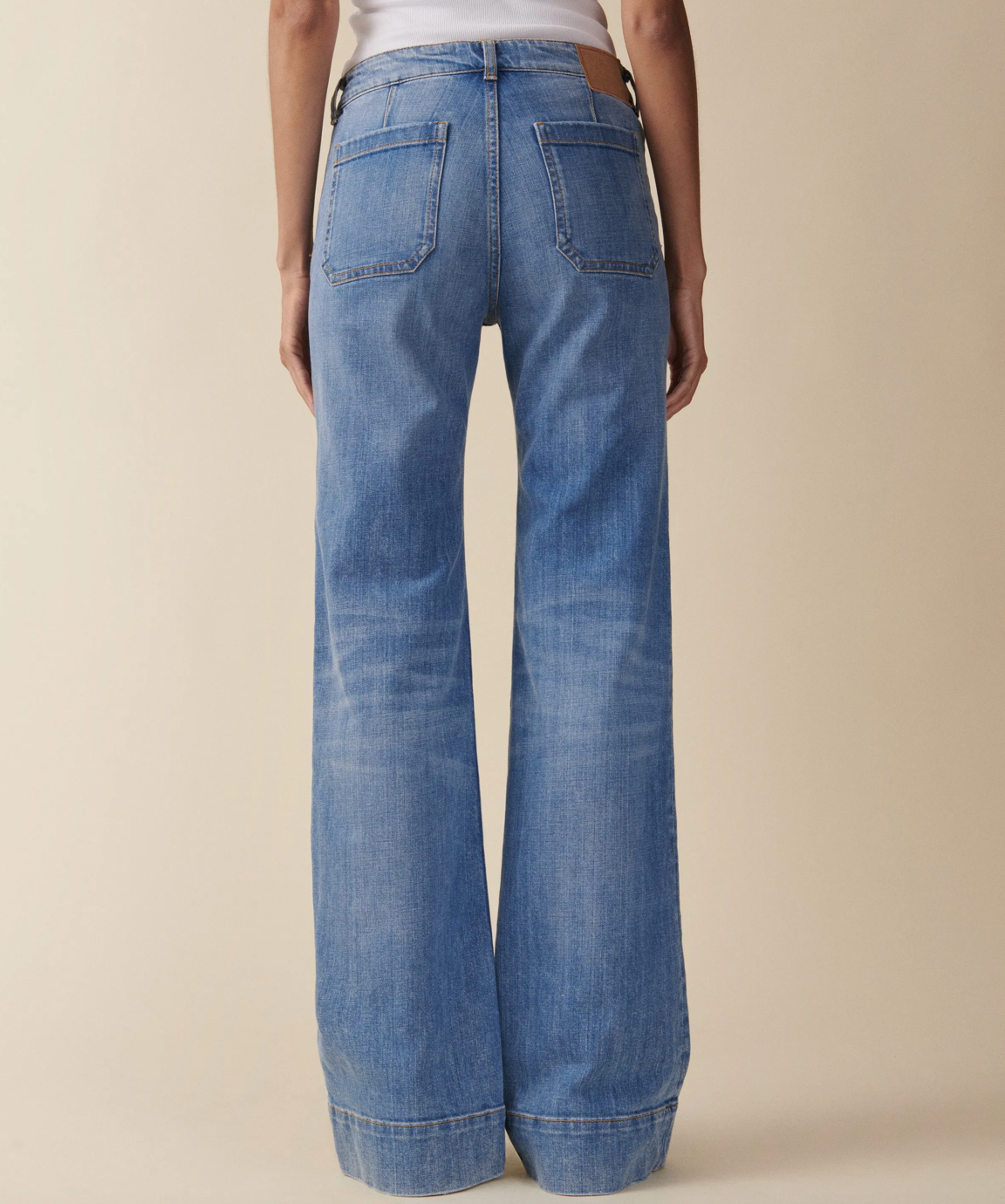 'St Monica Low' is a low-rise version of our iconic fit, which look to sailor archives of the late 1960s with its patch pockets, flares and wide hemlines.Model is 175 cm/5'9” and wears waist 26 and length 34.True to size.