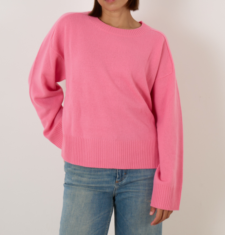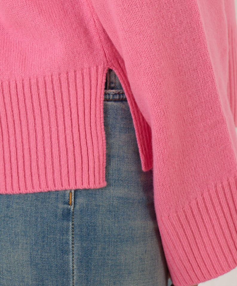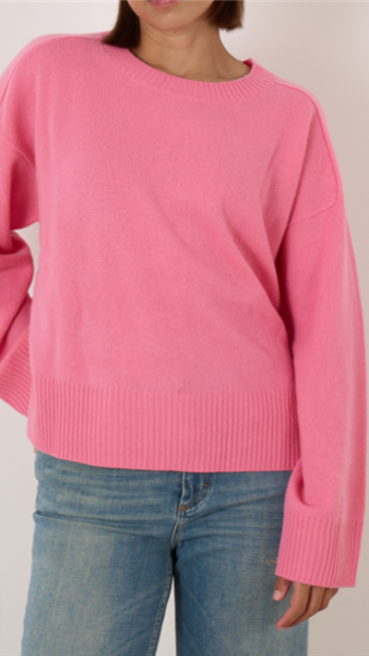 Rundhalset vidermet strikk i merinoull med lett overvask-effekt. Vanlig passform med sadelskuldre, sidespalter og nyskapende strikkesømmer.