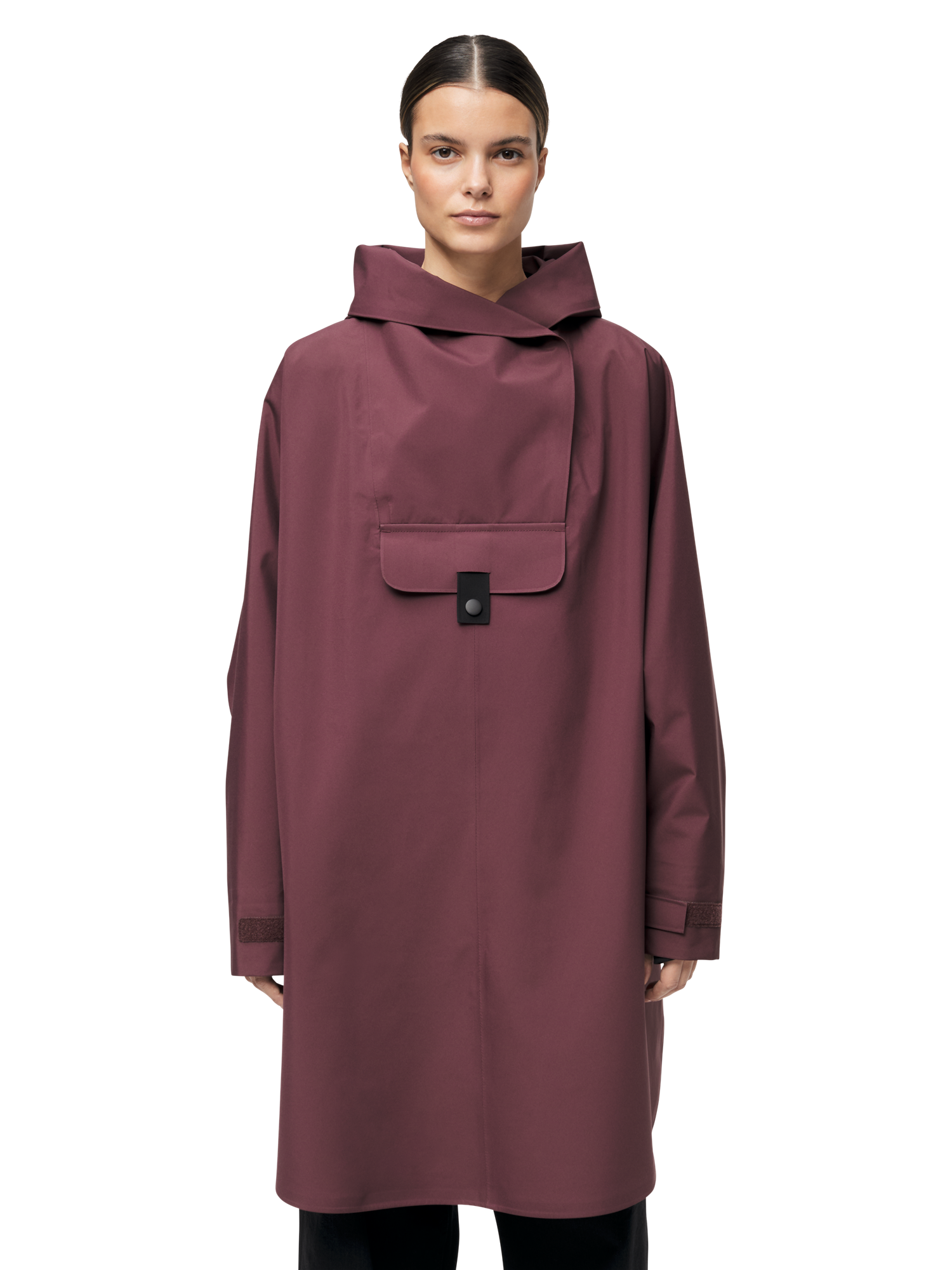 Bergen Poncho har A-formet silhuett. Den er vanntett, vindtett og pustende og passer i alle typer vær - hele året! Oversized passform. – Justerbar ermeåpning med elastisk lycra-mansjett