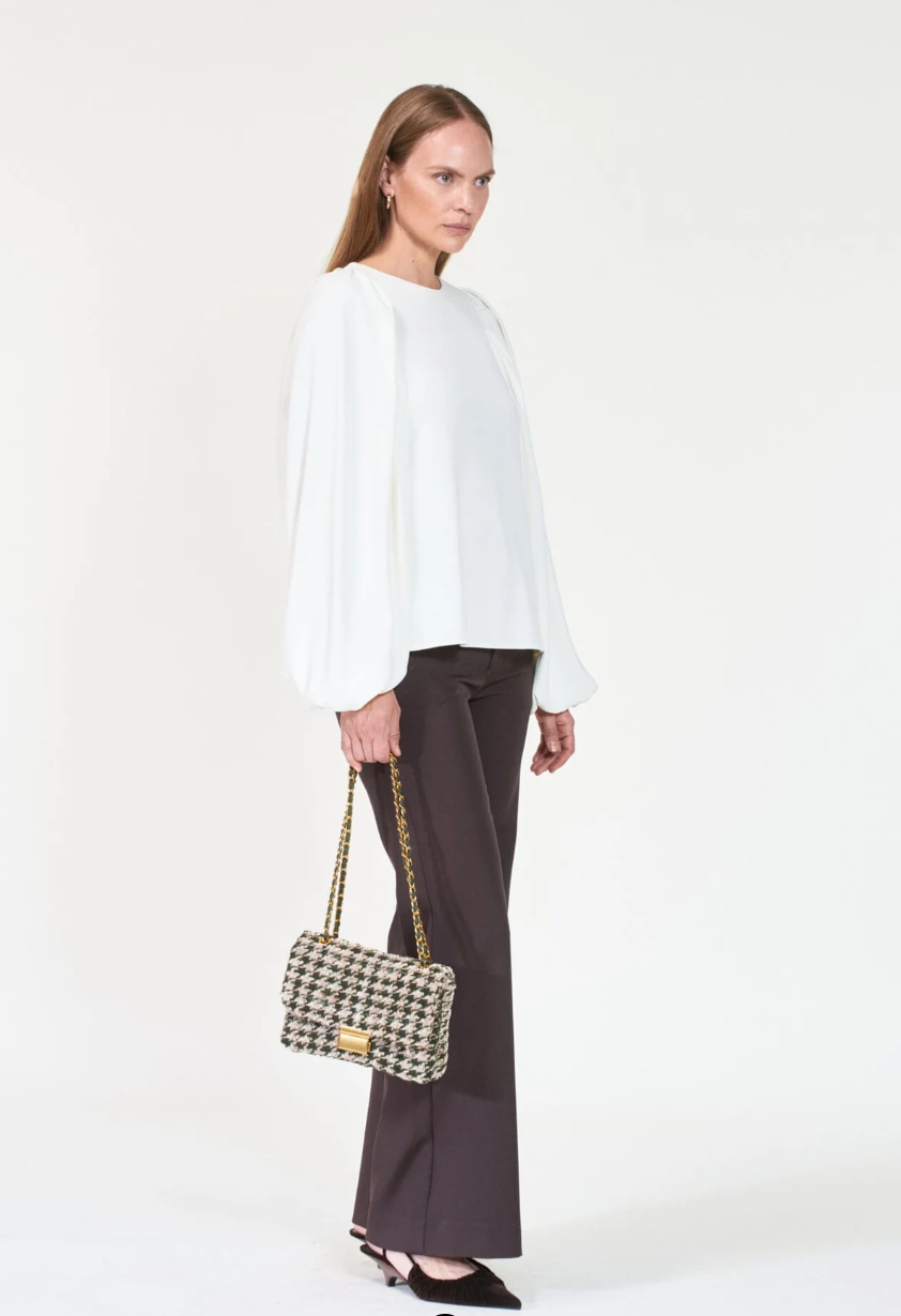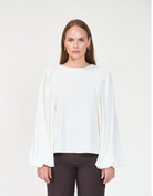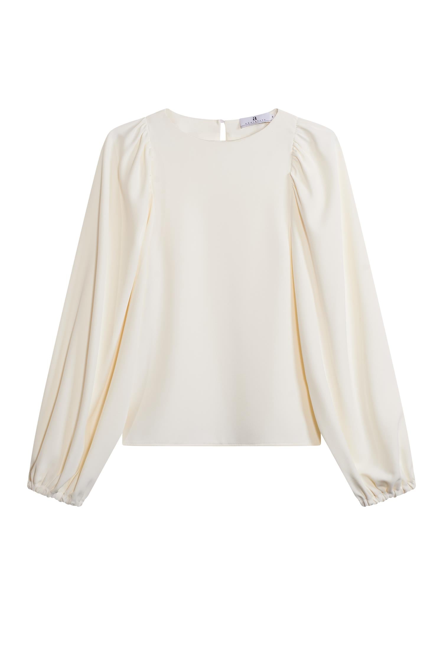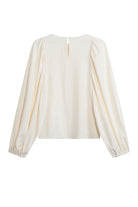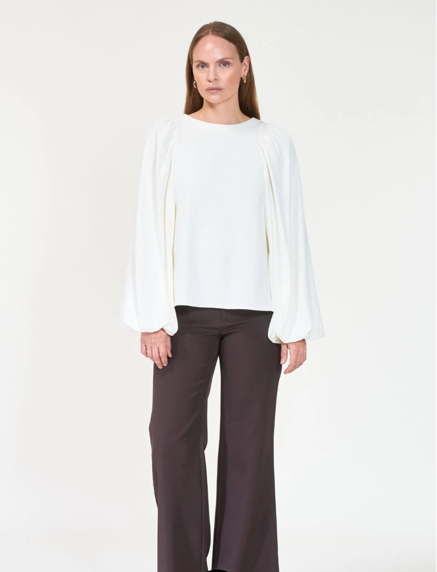 Elegant bluse i en lett A-linjeskåret fasong og brede, voluminøse ballongermer med smal mansjett. Blusen har en enkel nøkkelhullslukking bak.