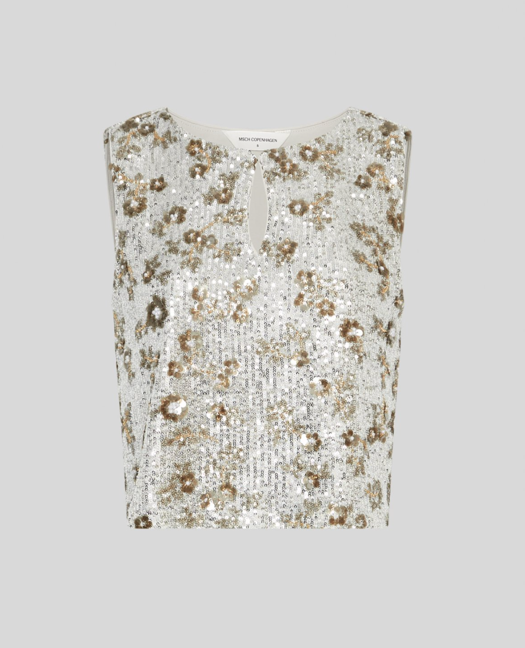 MSCHMagnolia SL Top EMB, et fantastisk tilskudd til garderoben din som kombinerer eleganse med et snev av glitter. Toppen har en fengslende sølv- og kokosfargekombinasjon som forsterker dens skimrende appell. Denne ermeløse toppen er laget med omhyggelig oppmerksomhet på detaljer, og tilbyr en flatterende passform som er perfekt for lag-på-lag eller bruk alene. MSCHMagnolia SL Top EMB er ikke bare et klesplagg; det er et uttrykk for stil og individualitet. Enten du kler deg opp til en festlig anledning eller ønsker å løfte hverdagsantrekket ditt, er denne toppen et utmerket valg. 90 % polyester og 10 % elastan.