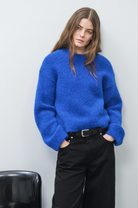 Knitted from high-quality alpaca blend yarn, this regular-fit crew neck jumper with dropped shoulders stands out thanks to its heavily brushed surface. 2% elastane ensures shape retention and increases comfort. With ribbed cuffs at the neckline, sleeve ends and straight hem.
