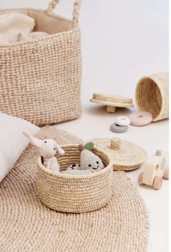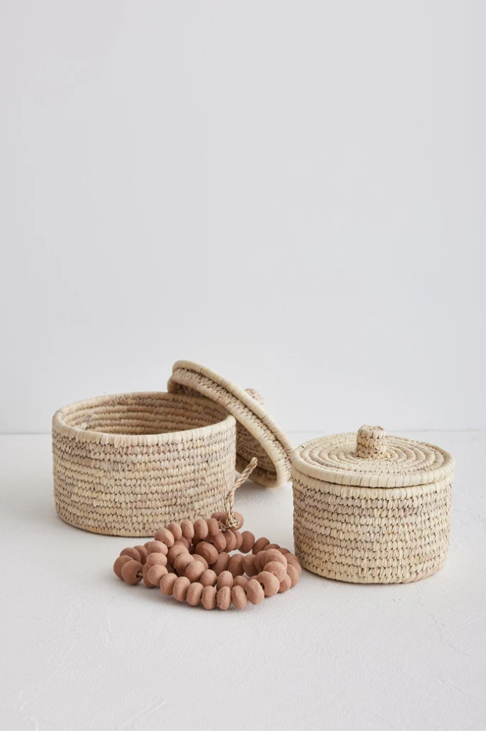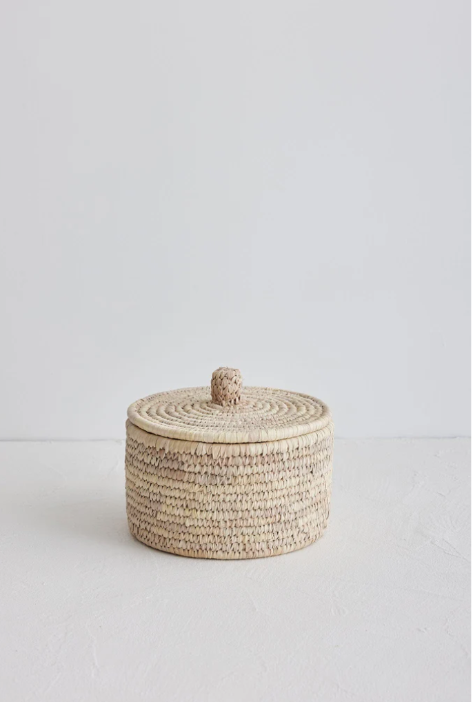 Vår naturlige Buna-kurv i palmefiber med lokk er en vakker måte å introdusere vevd tekstur i hjemmet ditt. Tidløse og funksjonelle, de vil se flotte ut med våre favoritttoner av tre og kritthvitt, kombinert med jordaktig keramikk og lin. Kombiner med den lille Buna-kurven for ekstra oppbevaring i samme vev og farge for å skape en helhetlig visuell historie i hjemmets styling.