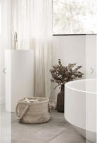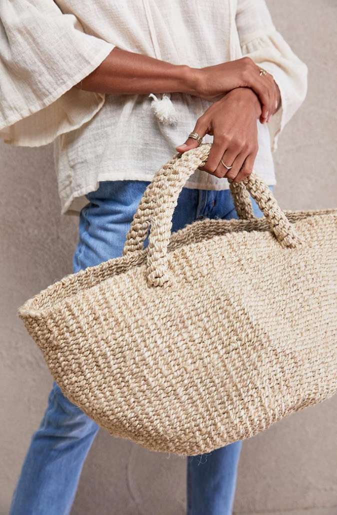 Dette møbelet er håndlaget fra start til slutt av fair trade-håndverkere i avsidesliggende, landlige samfunn i Bangladesh, og har også tykke makraméhåndtak. Vi elsker å bruke det til pledd og puter i stuen; sko i entréen; eller til å vise frem favorittskjerf og -tilbehør.