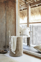 Det vakre rustikke ytterstoffet er en kombinasjon av naturlig farget brun jute og naturlig jute. Foret med en myk håndvevd naturlig bomull, er Boda Basket egnet for de mykeste klærne og spesielle skatter. De sterke håndlagde makramehåndtakene er både solide og uttrykksfulle.