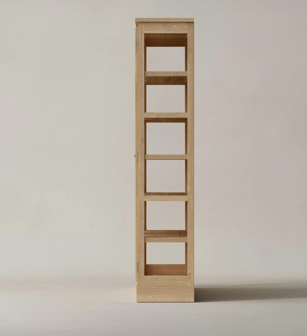 N2 Light Oak er et høygulvskap med 2 dører. Vitrinen er laget i lys massiv eik med en mattlakkert overflate. Resultatet er en tekstur og varme som lar den delikate trestrukturen fremstå. N2 Light Oak vitrine er designet med en forenklet toppprofil og hengsler og knotter i