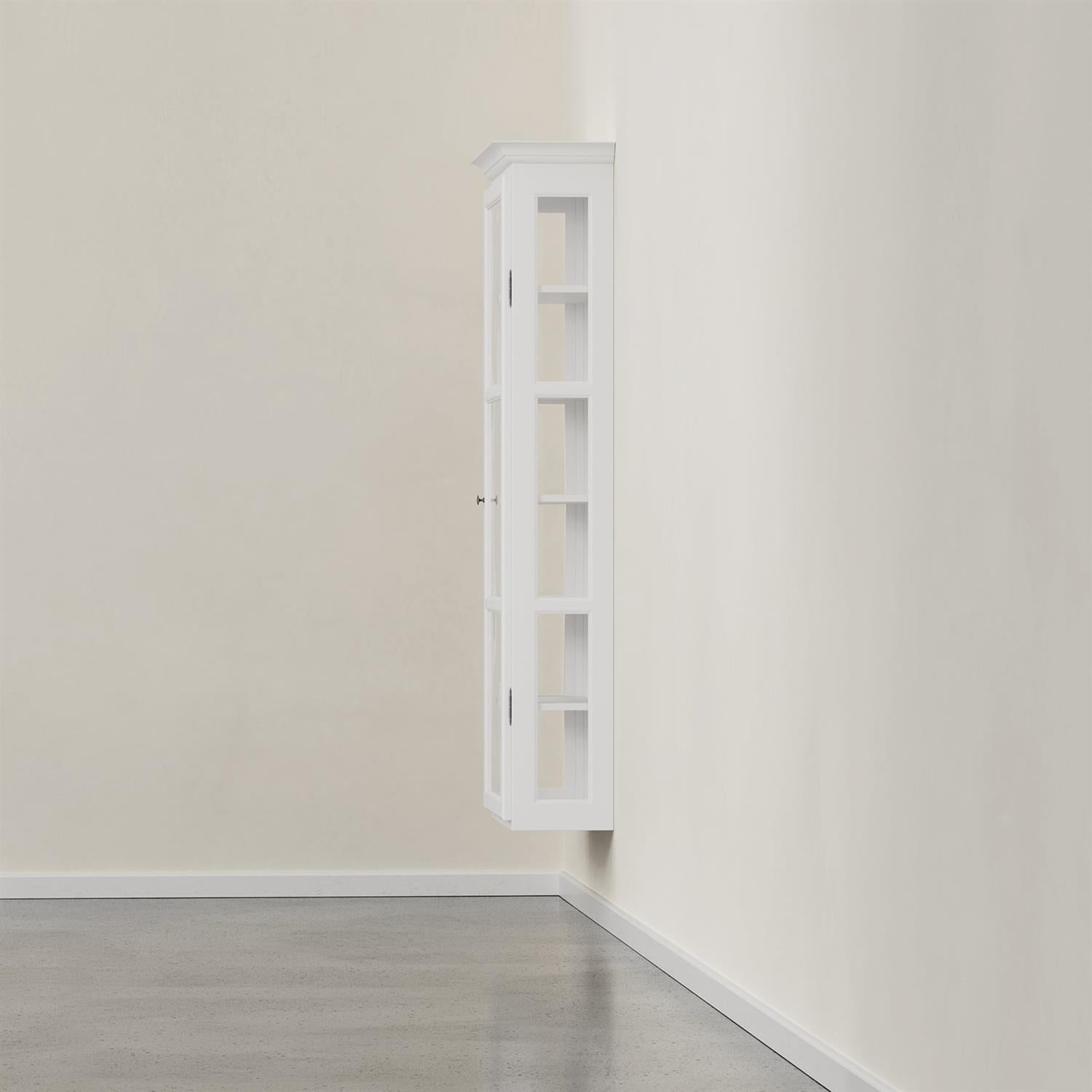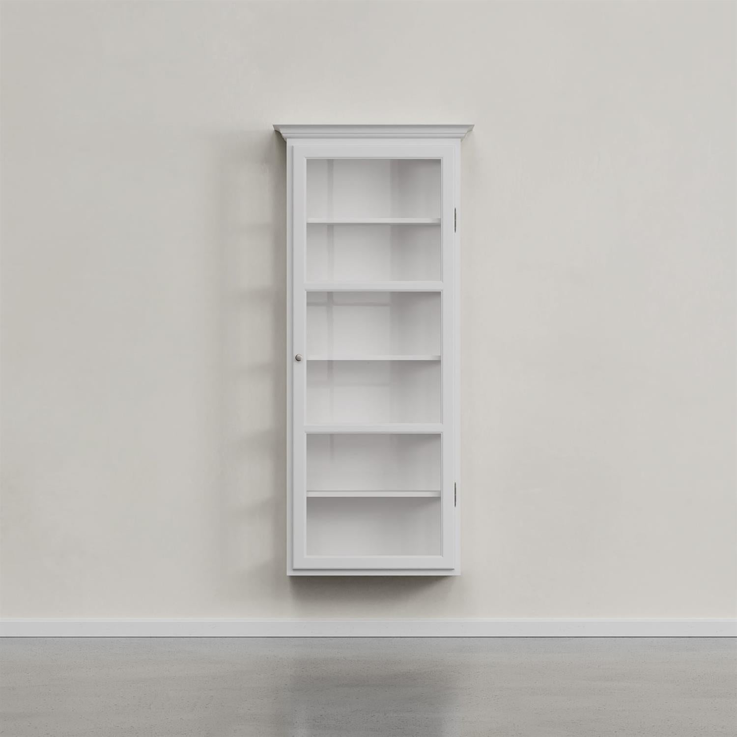 Smalt, hengende vitrineskap med én dør