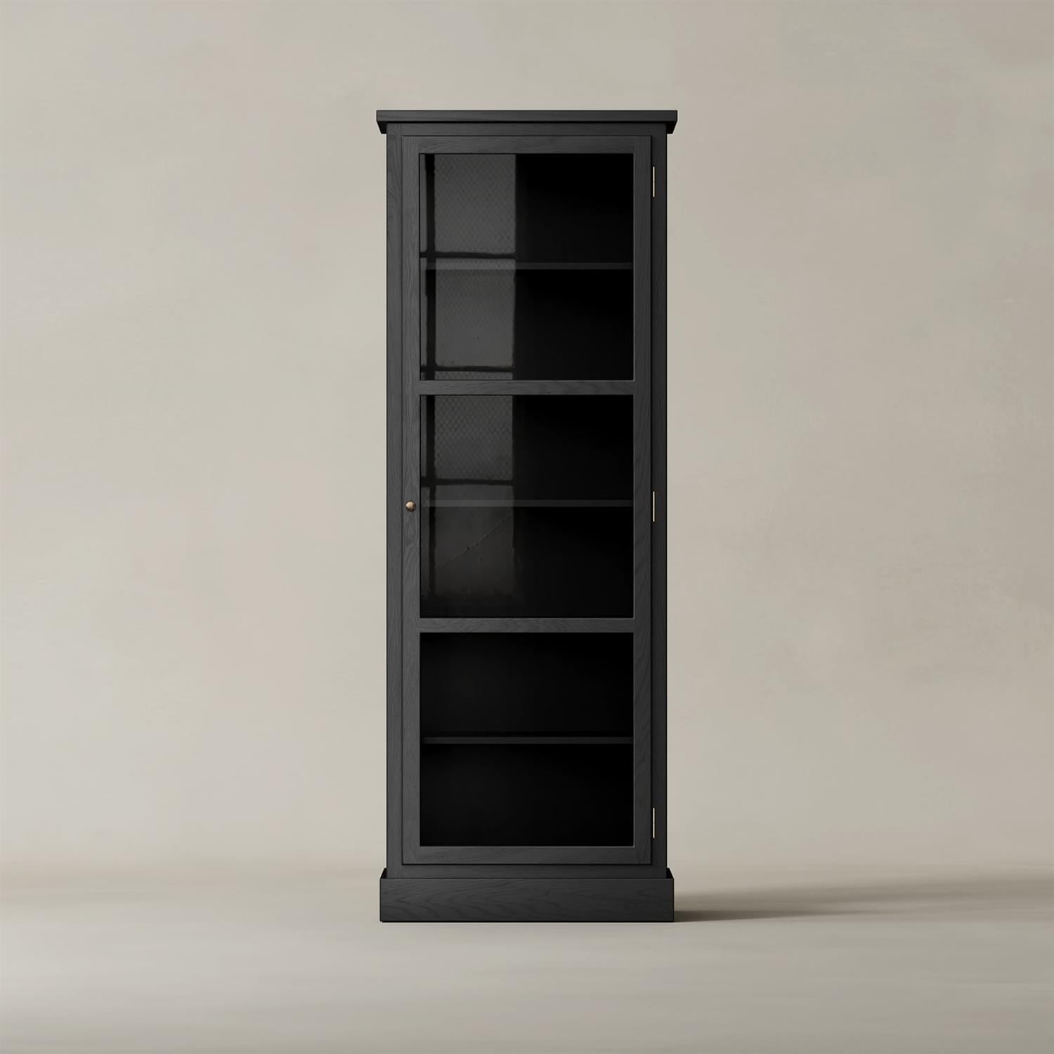 Dark Oak N1 vitrineskap er en spesialutgave av N-serien, laget av eik og beiset dyp svart brun. Resultatet er en tekstur og varme som lar den delikate trestrukturen komme frem. N1 Dark Oak-montre er designet med en forenklet toppprofil og messinghengsler og håndtak.