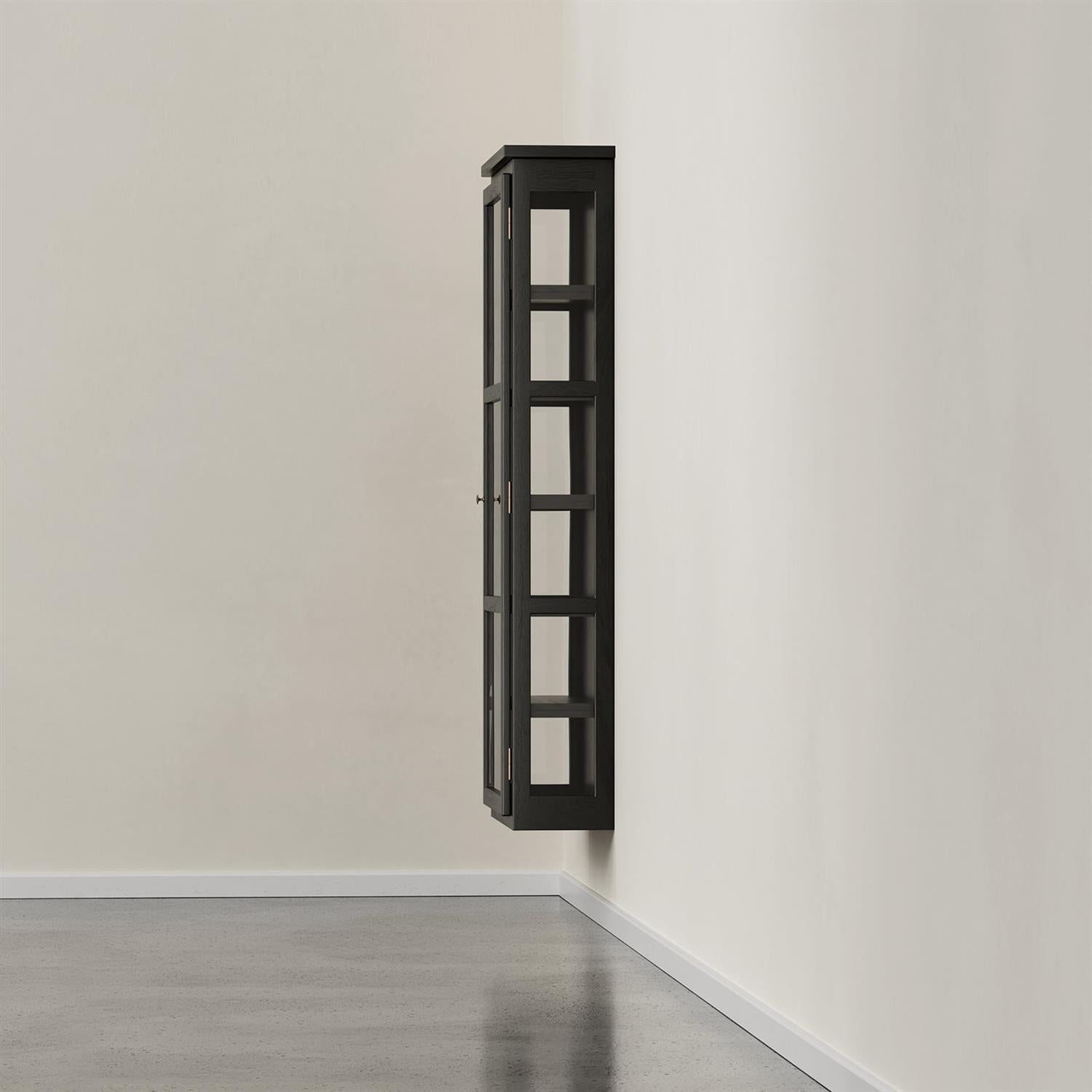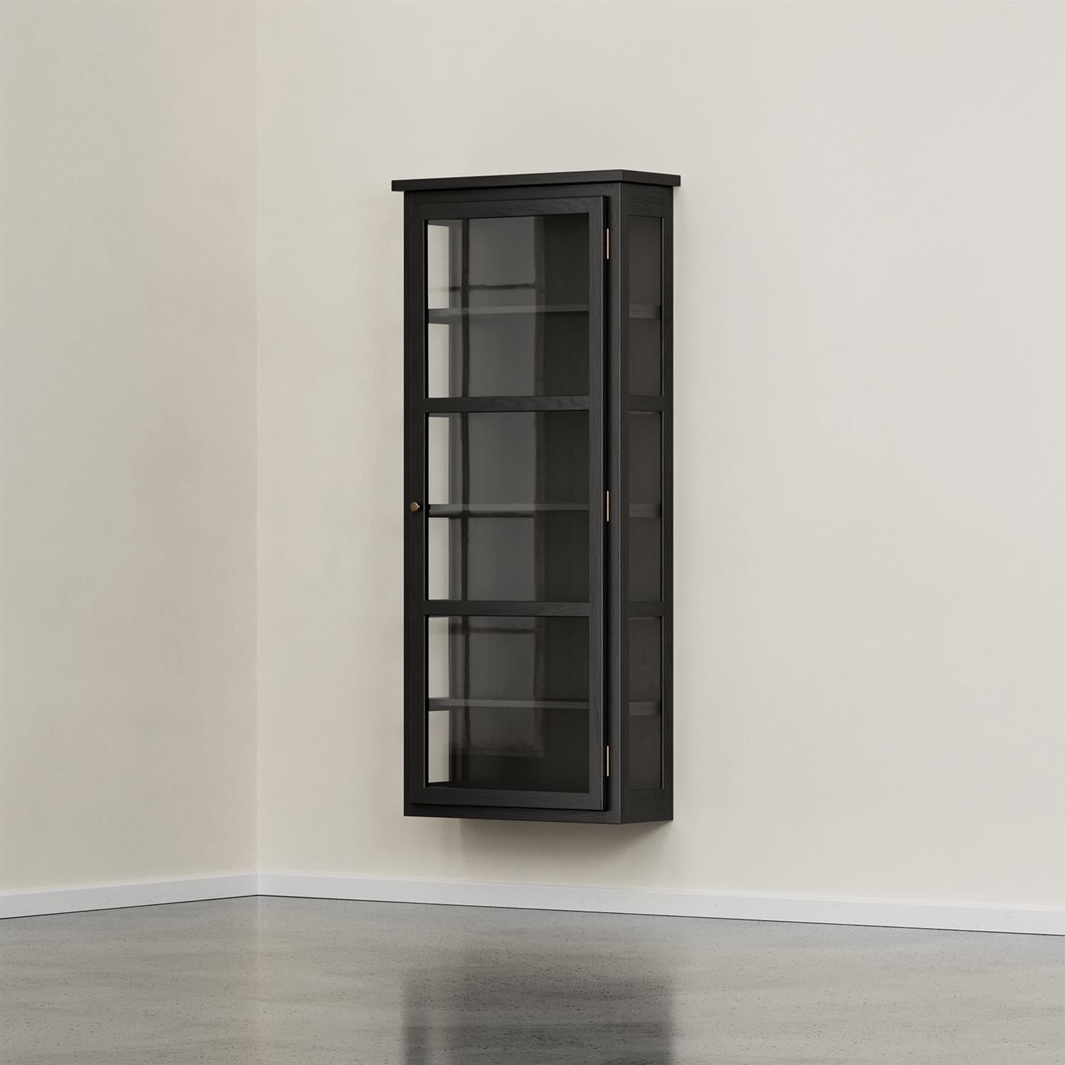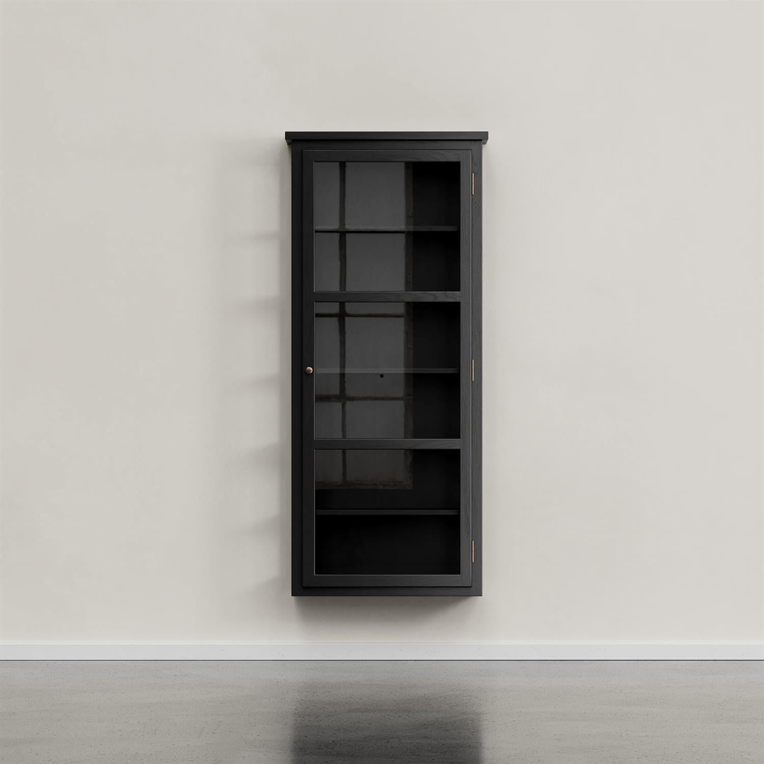 delikate trestrukturen komme frem. Vitrineskapene er en streng og oppskalert versjon av våre montrer. Et uttrykk som går hånd i hånd med de typiske skandinaviske tradisjonene i arbeidet med eik. Vitrineskapet passer perfekt inn i et monokromt og nordisk-inspirert miljø.