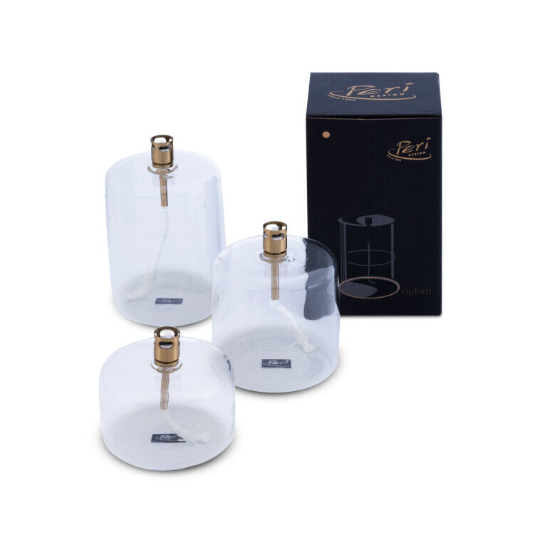 Opplev varm, organisk glød fra vår Oljelampe-sylinder i klart glass og messing. Håndverk møtes med moderne enkelhet, og lampen sprer lyset elegant over bordet. En liten lampe med stor atmosfære - perfekt som bordbelysning, ved festlige middager eller som et elegant høydepunkt i stuen. Kombiner flere størrelser for harmoni, eller la én lampe være et subtilt, men effektfullt midtpunkt.
