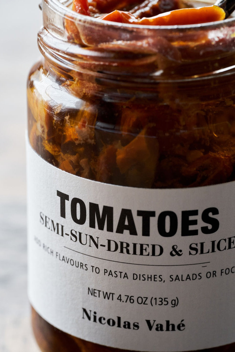 Saftig, fyldig og fullpakket med smak. Disse semi-tørkede tomatene fra Nicolas Vahé beholder sin sødme og konsistens, da de ikke er fullt ut soltørket. De er allerede kuttet i strimler, slik at du raskt kan bruke dem i en pastasalat eller en hvilken som helst middelhavsrett som ikke er helt uten farge, sødme og intens smak av tomater. Å lage et deilig måltid har aldri vært enklere