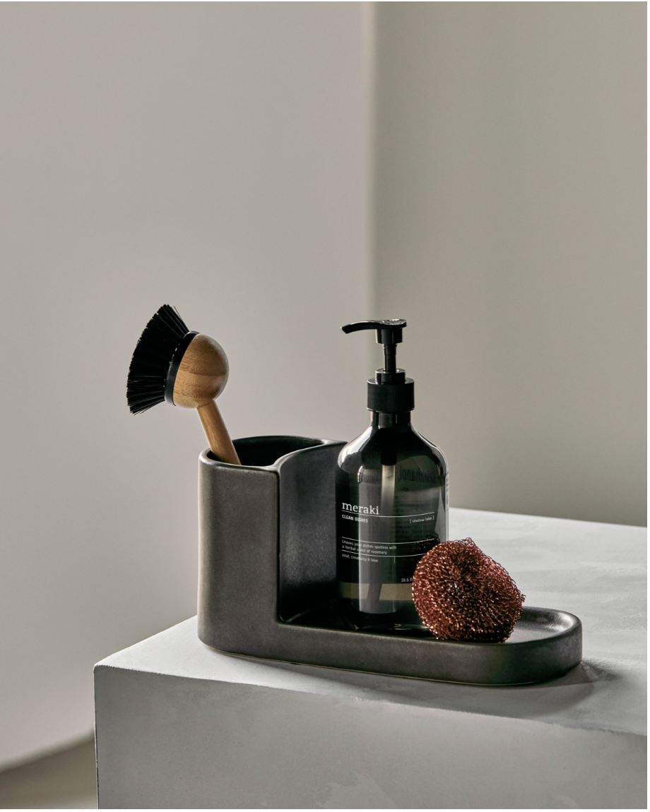 Hold orden på kjøkkenbenken med denne elegante børste- og såpeholderen i mørk grå keramikk.