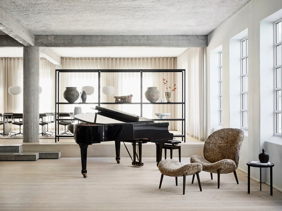 Lodge-fotskammelen er en frittstående fotstøtte som skal kombineres med Lodge-loungestolen. Denne fotskammelen har et støpt mykt skall og ben i heltre eik. Skallet på Lodge-fotskammelen kan tilpasses i hele Vipps møbelkolleksjon.