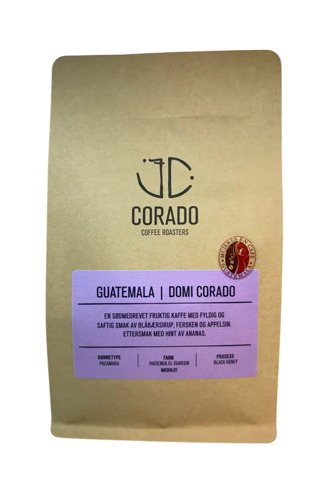 Opplev en av de mest eksklusive kaffene fra Hacienda El Guarsin: vår Pacamara Black Honey mikrolot. Pacamara er en av verdens mest anerkjente og ettertraktede kaffetyper, kjent for sin store bønneform, komplekse aroma og ekstraordinære koppkvalitet — og hos Corado Coffee Roasters er dette vår mest eksklusive kaffetype. Med kun 203 kg produsert, og med Corado som det eneste brenneriet i hele verden som har tilgang til denne loten, er dette en kaffe med svært begrenset tilgjengelighet og høy samlerverdi.
