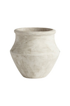 Håndlaget av terrakottaleire i en vasket hvit farge, er denne krukken inspirert av middelhavsregionene. Den detaljerte overflaten passer perfekt til den lyse sommeren og de mørkere nyansene av høsten. Formen på potten er dekorativ og enkel, og perfekt for små planter, dekorative grener og snittblomster.
