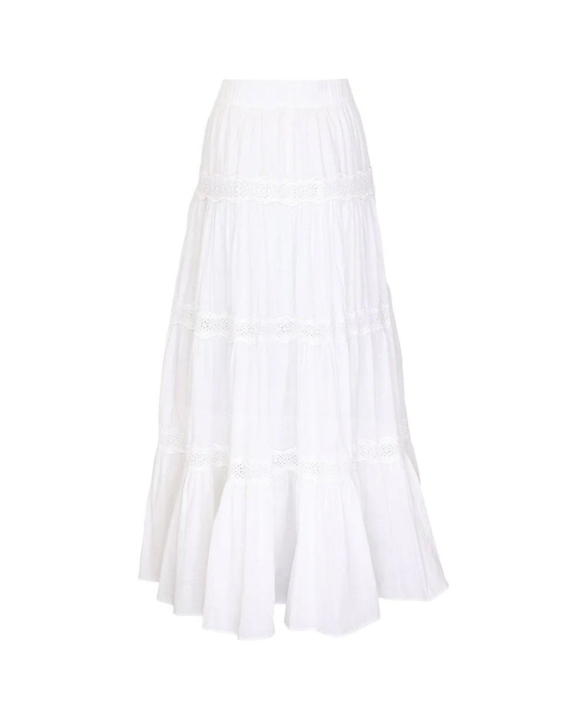 The Cotton Slub Skirt is crafted from our light and soft GOTS certified quality, with slub detailing in the fabric. It has a maxi length, elastic waistline and voluminous, flowy silhouette. The skirt is tiered and has beautiful broderie anglaise inserts. It has a side zip closure.