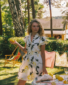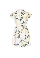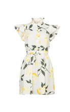 Linkjolen med volanger er laget av vår fine kvalitet, OEKO-TEX-sertifiserte lin. Kjolen har en minilengde, tettsittende midje, mandarinkrage med volangdetaljer, knapper nedover brystet og skuldrene laget av volanger. Den leveres med et matchende belte og har glidelåslukking på siden.