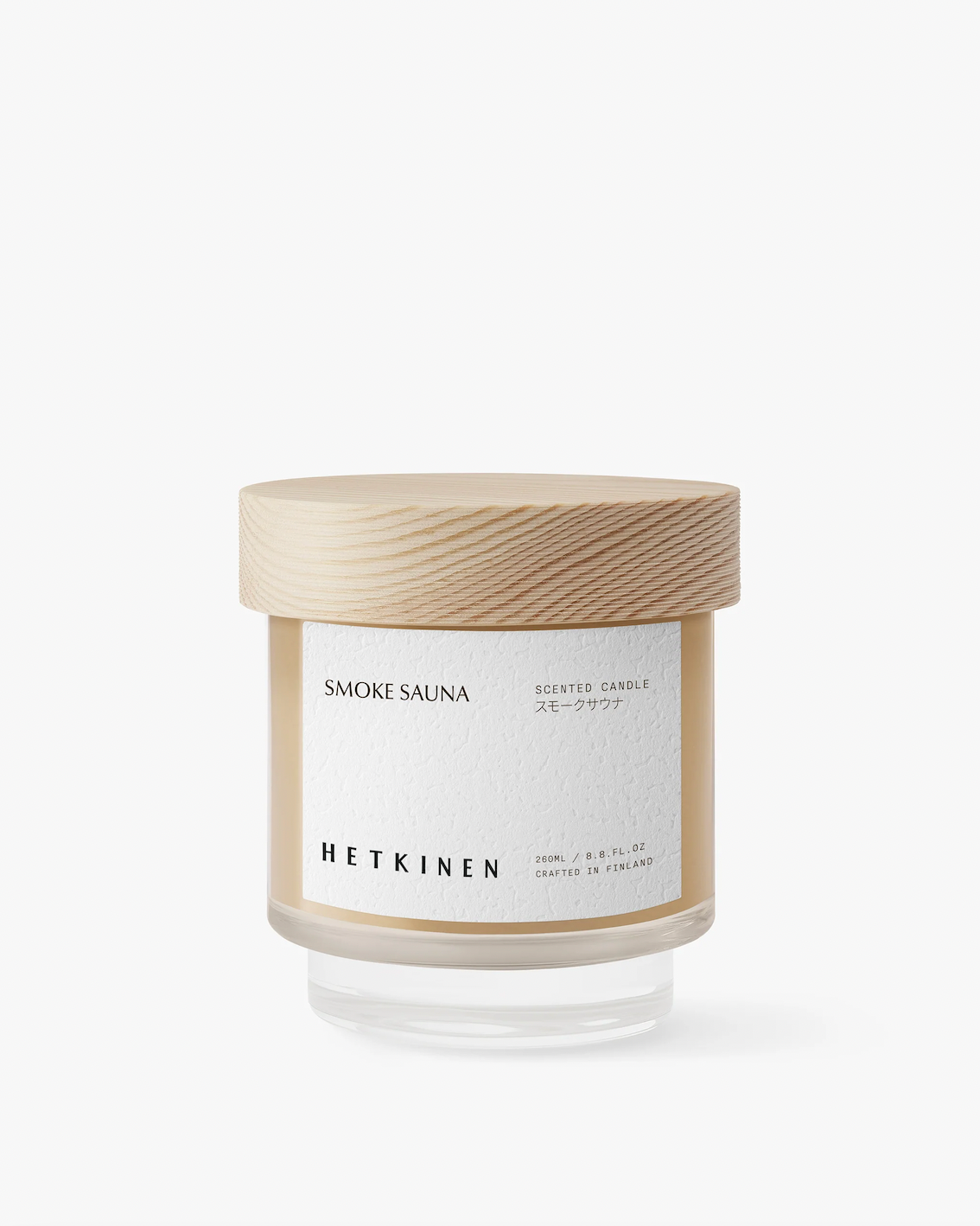 Et stearinlys som fanger den dype, røykfylte roen i en finsk røyksauna. Furutjære, eukalyptus og mild trerøyk blandes til en duft som føles jordnær og ren. Jordnær, dristig og beroligende – et øyeblikk av finsk stillhet og fornyelse.