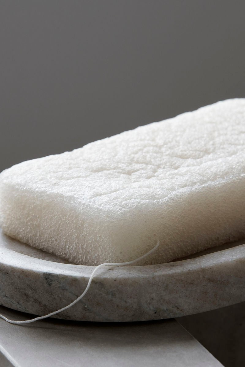 Meraki presenterer konjac-svampen White, som med sin firkantede form kan brukes på hele kroppen. Svampen er laget av 100% vegetabilsk materiale som kommer fra silkefibre fra konjactreet. Med sin milde peelingeffekt renser svampen huden og etterlater den ren og myk. Konjac-svampen kan brukes til alle hudtyper.