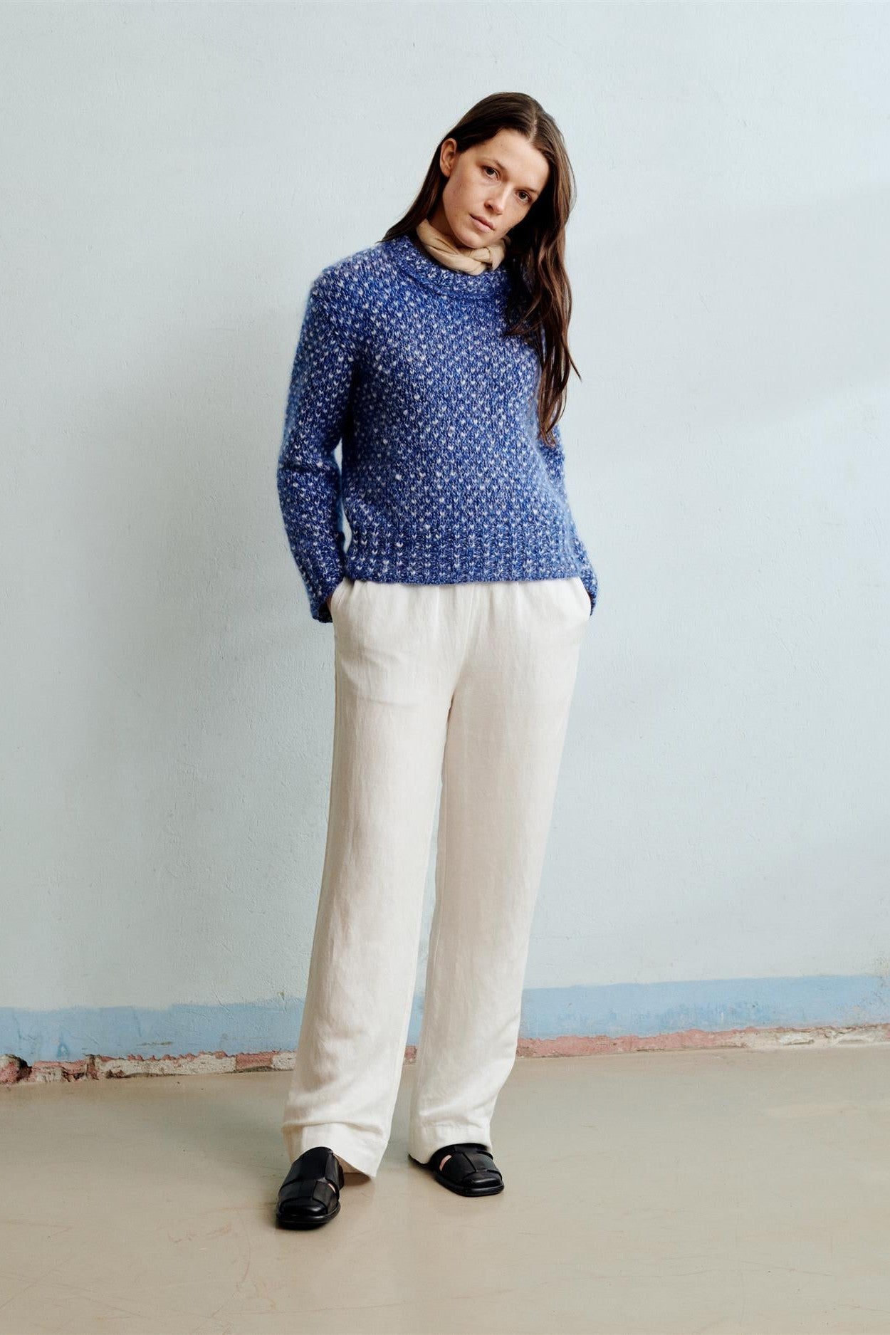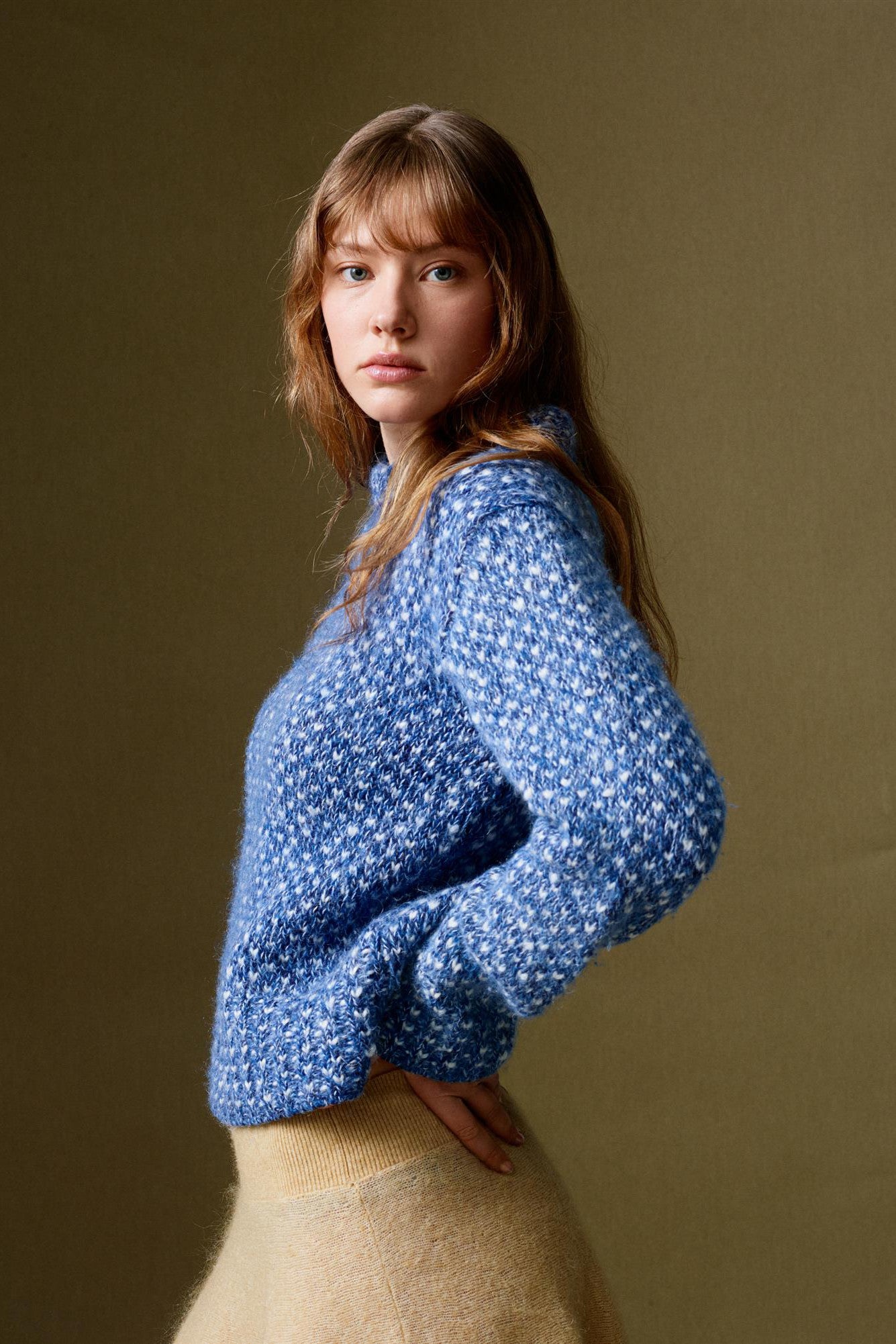 Vi presenterer vår bestselger i en rund hals. Ole er inspirert av en av Devolds mest ikoniske gensere, Nordsjø. Tykk strikk, designet med et uregelmessig mønster og strikket i flere farger for å skape dybde. Laget av fin merinoull, kid-mohair og silke, med mohairgarn som gir en luftig følelse. Modellen er 177cm og bruker Str S.