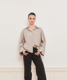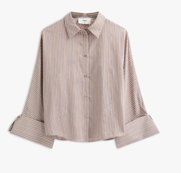 Skjorte til dame fra Iben i en lett og pustende bomullsblanding med elegant fall. Skjorten har en oversized silhuett, brede mansjetter og lett cropped lengde.