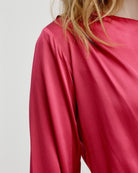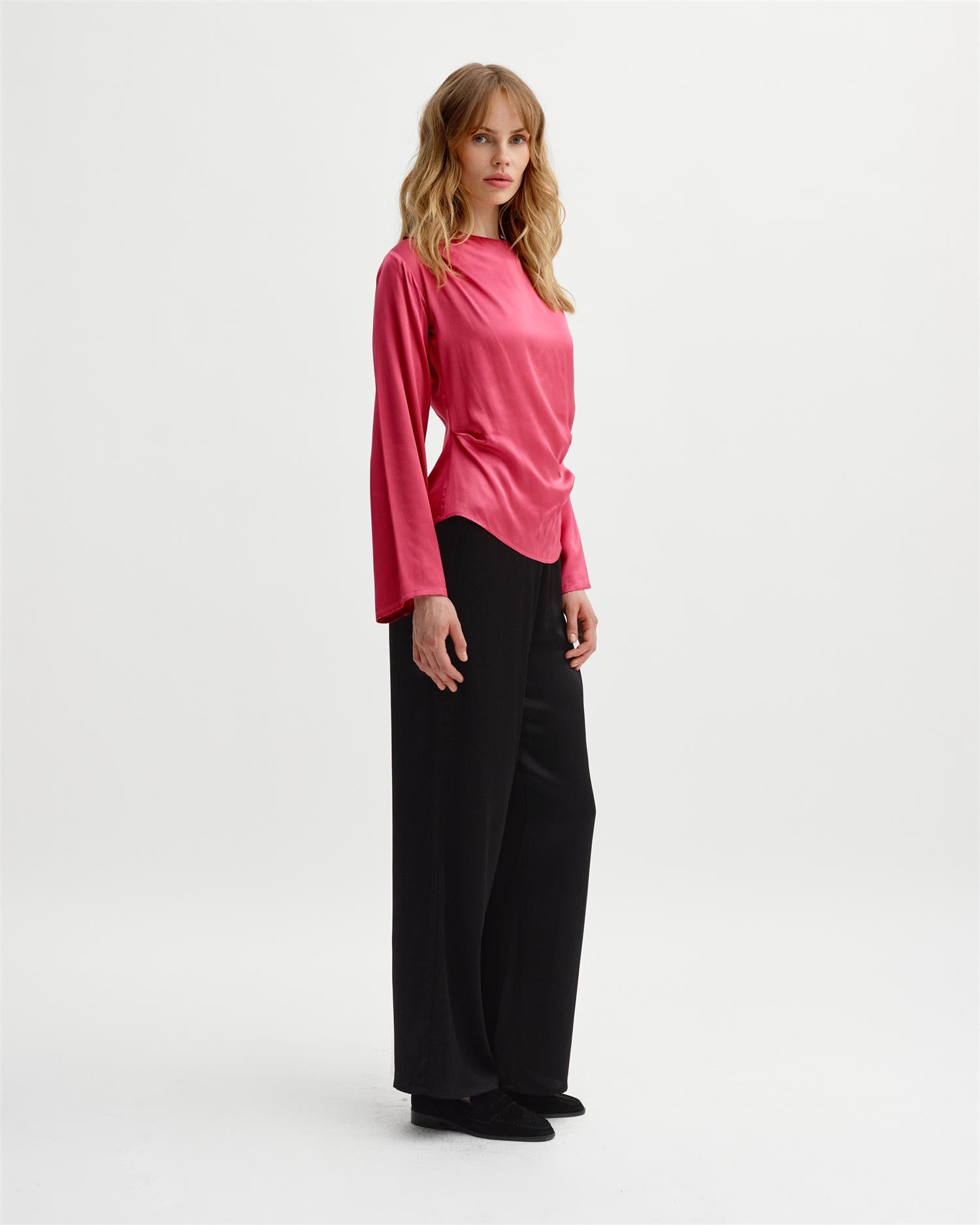 Denne klassiske blusen er en feminin og lekker. Paris Blouse sklir elegant over skuldrene med en båthals som avslører litt av de fine kragebeinene, mens de løse, lange ermene beveger seg som et elegant i takt med hvert steg du tar. Delikate draperinger på skuldrene og siden gir en flatterende silhuett og et sofistikert uttrykk som er like naturlig i hverdagen som på festlige kvelder. Det tidløse snittet gjør blusen til en sesong-etter-sesong-venn, perfekt for både kontorlook og mer festlige anledninger. Når du vil løfte antrekket med et snev av luksus, er dette plagget som gir deg det lille ekstra – uten å ofre komfort.