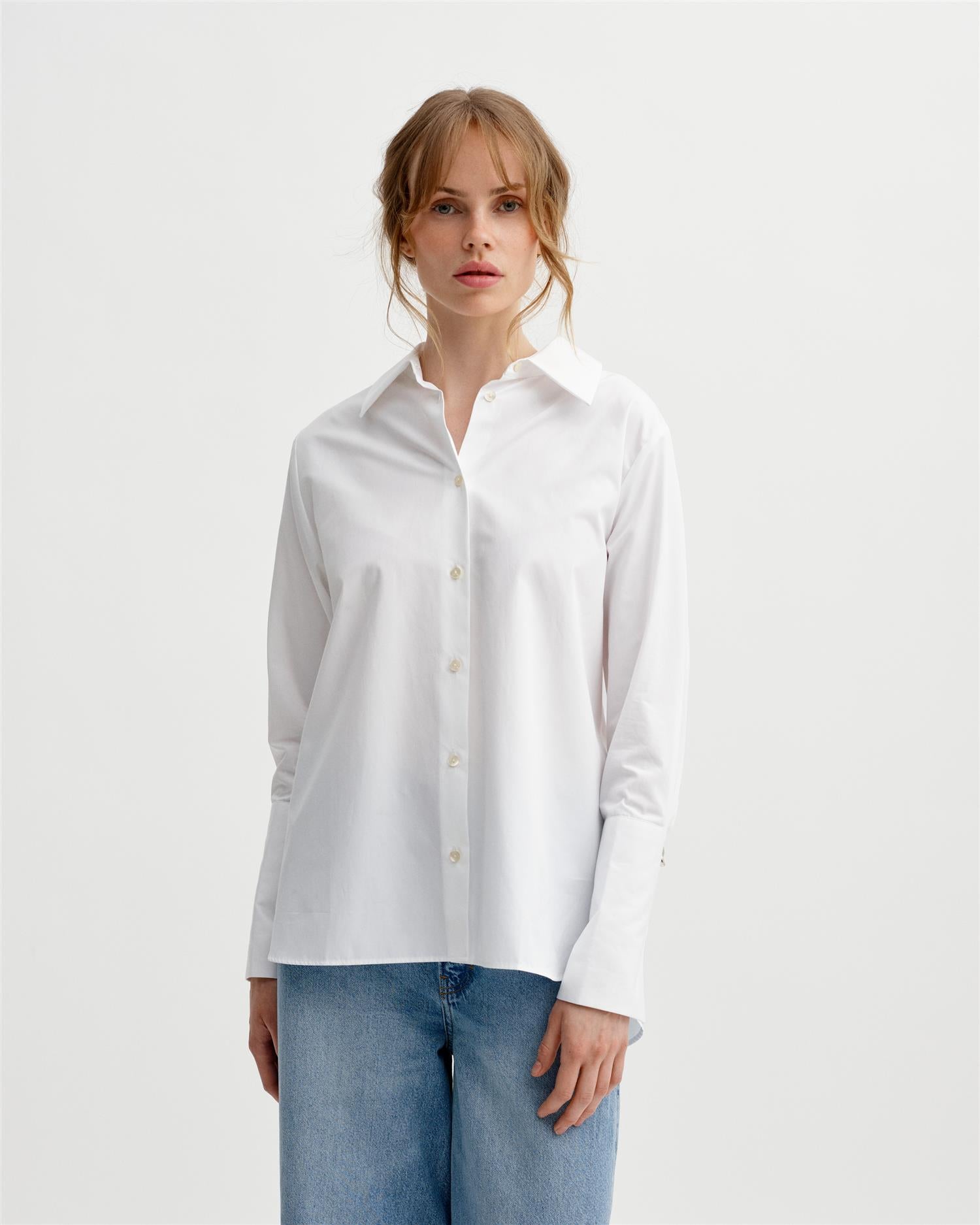 En tidløs hvit skjorte som oser av ren eleganse. Madrid Cufflink Shirt er sydd i 100% bomull og imponerer med brede mansjetter som gir et moderne uttrykk til den klassiske looken. Skjorten har en klassisk krage og knappelukking foran, mens den svakt A-formede silhuetten, litt lengre bak enn foran, skaper en flatterende, sofistikert profil som følger kroppen på en naturlig måte. Dette er et nøkkelplagg i basegarderoben – like perfekt med dressbukser for en polert kontorlook som med jeans for en avslappet, kul stil til fest.