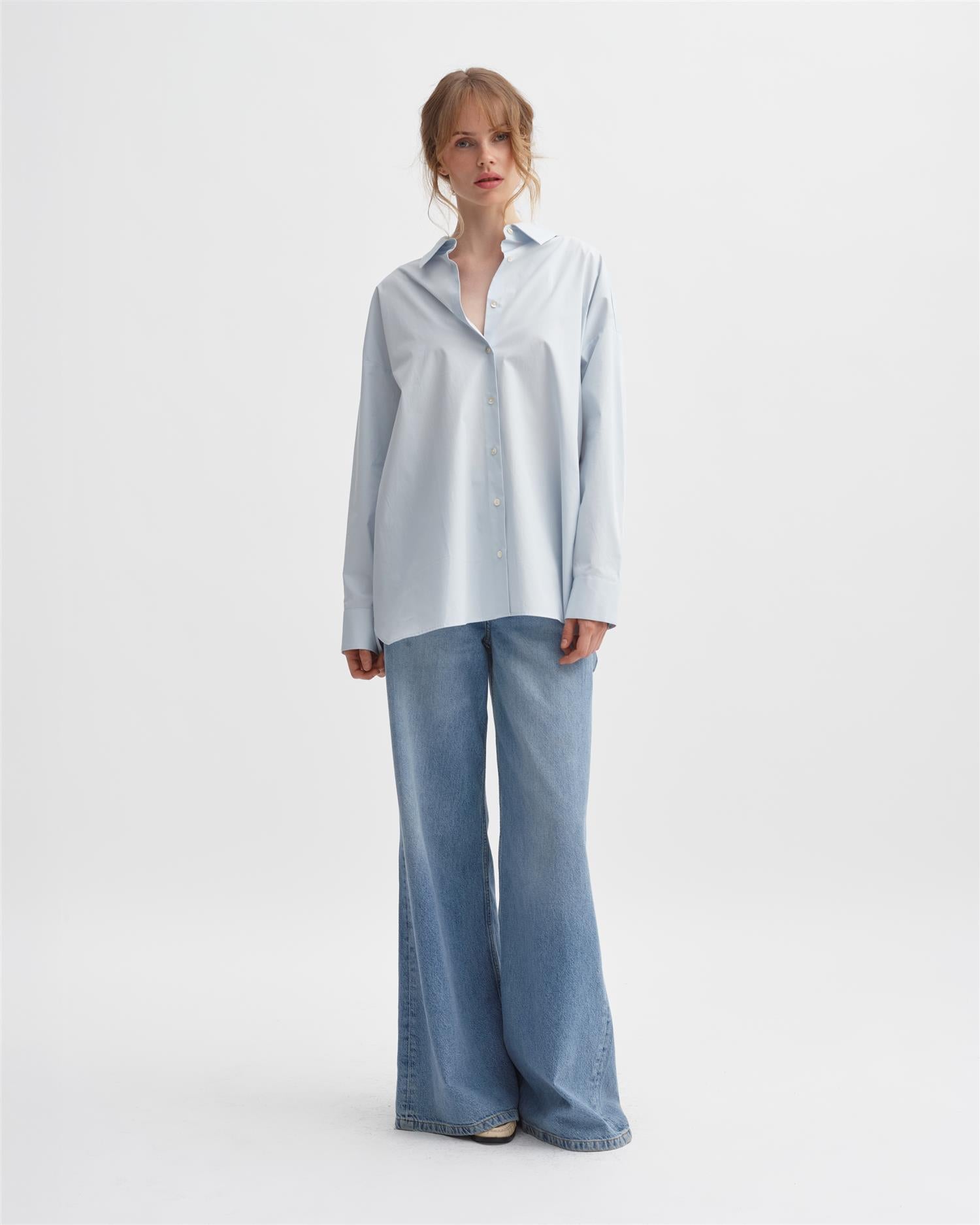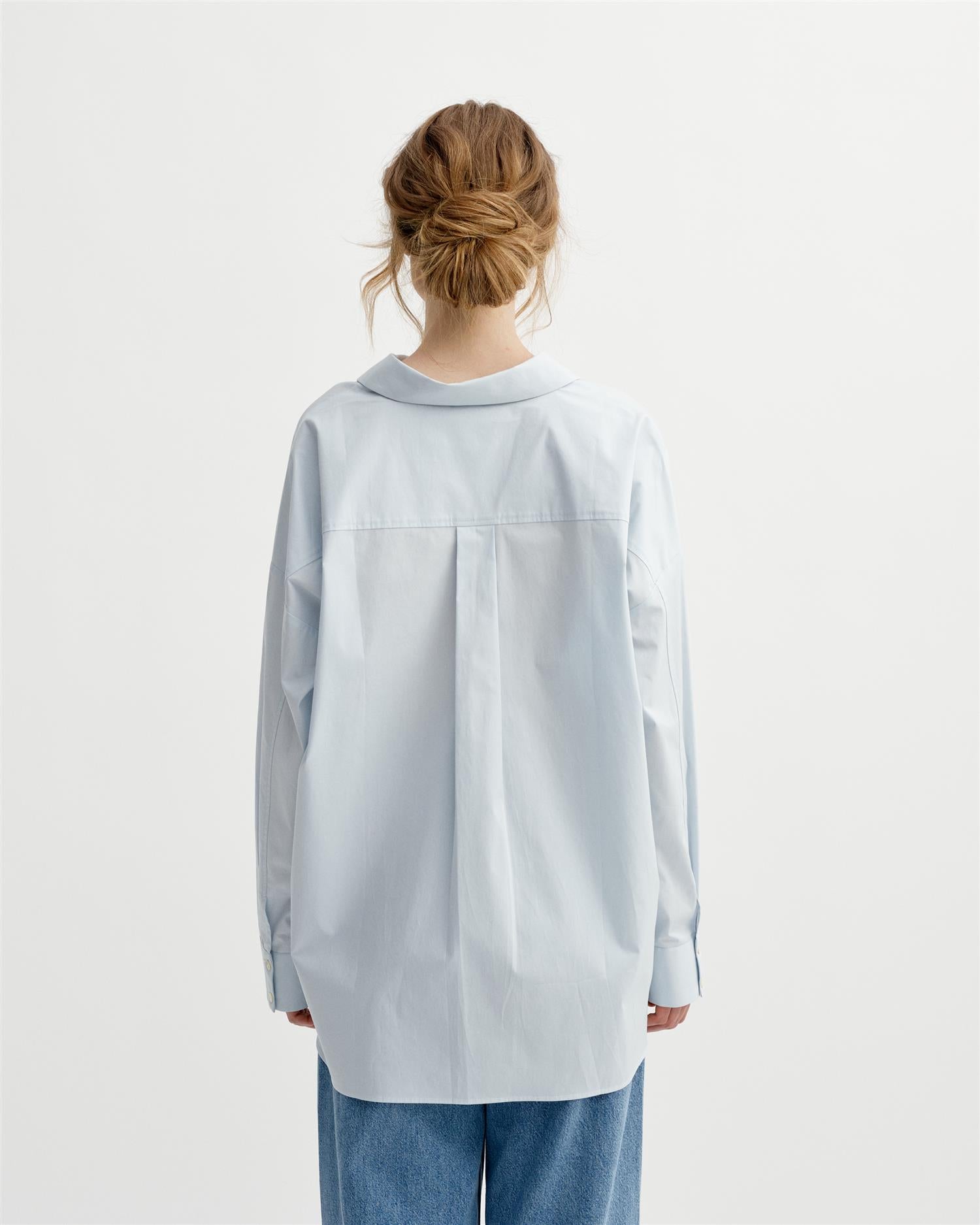 En klassisk skjorte som hviler lett i en delikat lys blå nyanse. Designet i en lett oversized fasong med en myk A-silhuett som gir en avslappet, men likevel sofistikert look. Copenhagen Shirt har skarp klassisk krage, sømløs knappelukking foran og elegante mansjetter. Perlemorsknapper tilfører et snev av eksklusivitet og et lite touch av luksus til hverdagslooken. Et tidløst baseplagg som følger deg sesong etter sesong – perfekt til både kontor og fritidsaktiviteter.