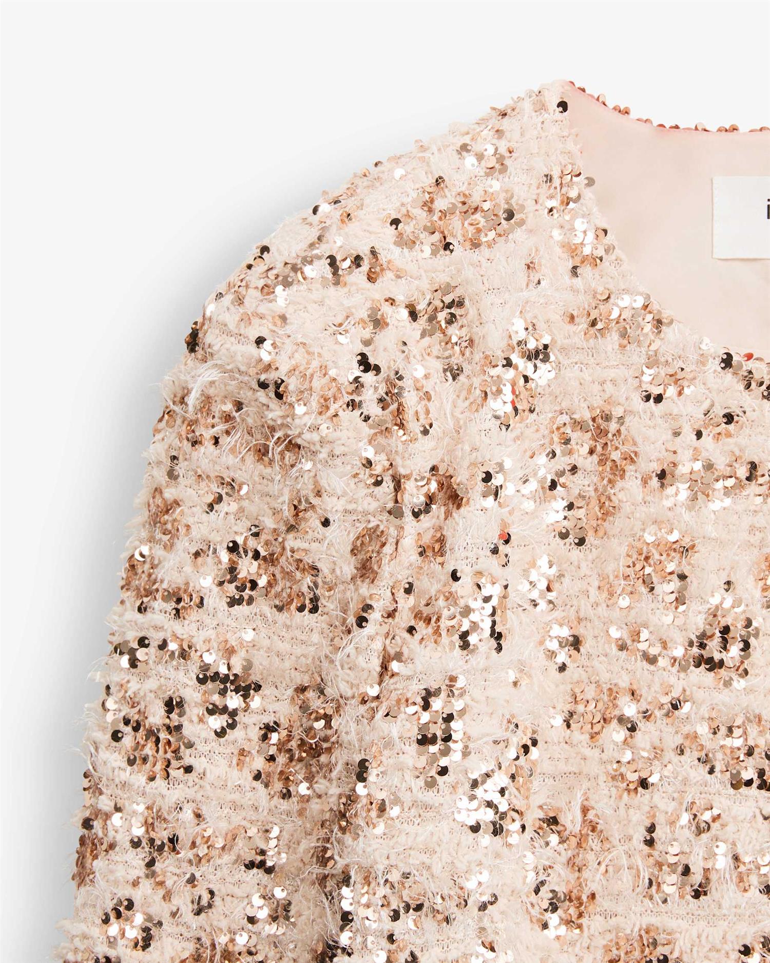 Gå inn i uanstrengt eleganse med Glitz Jacket, et statement-plagg designet for å heve enhver stil. Denne jakken kombinerer en teksturert stoffbase med spredte paljettdetaljer, og skaper en subtil, men likevel iøynefallende gnist som føles både moderne og raffinert. De nøye plasserte glitteraksentene fremhever det teksturerte stoffet, og skaper en unik dybde og en raffinert gnist som løfter jakkens design.
