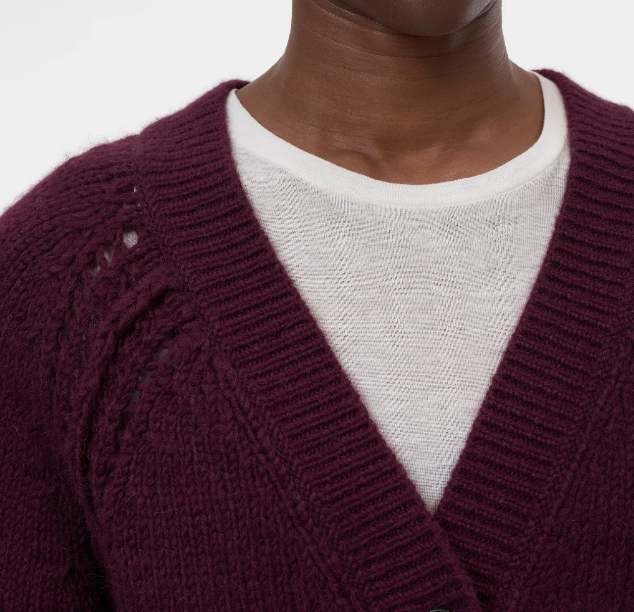 Our chunky knit cardigan features a regular fit that highlights the waist. The premium Italian yarn, spun at the traditional manufactory Pecci Filati exclusively for Closed, blends royal baby alpaca wool, fine merino wool, and nylon for durability. With ajour-details and ribbed borders.