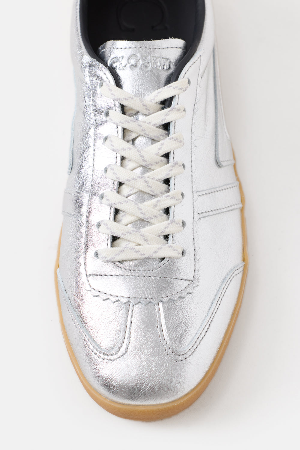 Håndlagde sneakers i italiensk skinn med metallisk finish og en elegant lav silhuett. Med vår signatur 33° vinkellapp og en polstret krage for optimal komfort. Presist håndverk og en gummisåle sikrer god brukbarhet i hverdagen. Laget i Italia