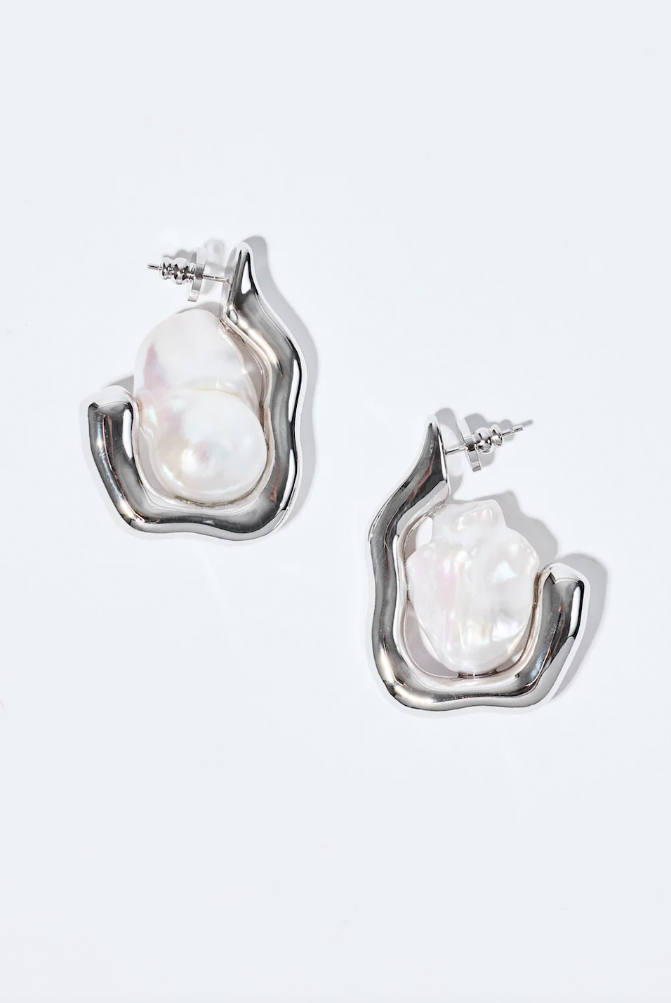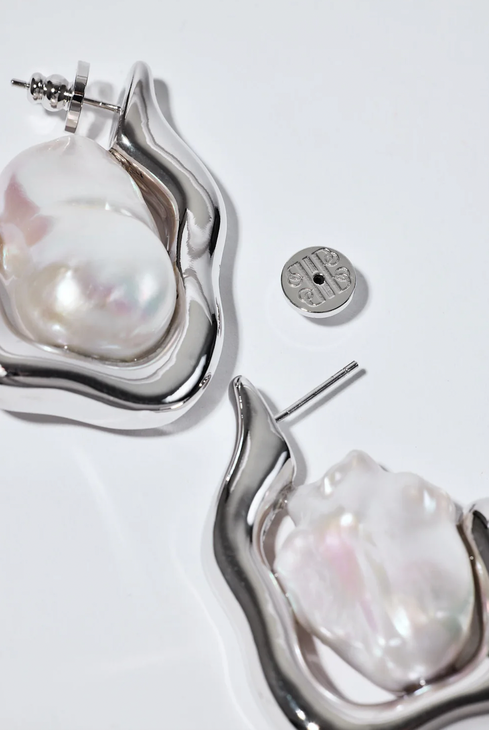 Bridging the modern and the classic, these statement earrings pair lustrous baroque freshwater pearls with a contrasting metallic frame. The perfect addition to your favorite evening dress, or an effortless accent to elevate a white shirt and slacks.