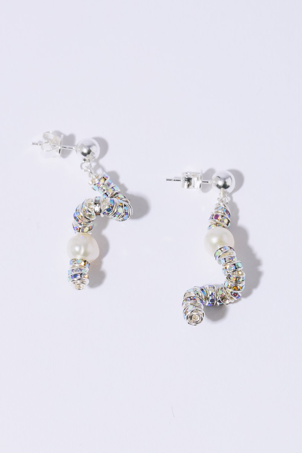 THE PEARL OCTOPUSS.Y TINY SILVER SNAKES are made of Silver Plated Rondelle beads in a Silver , Organic Freshwater Pearls and 925 silver sterling ear post.