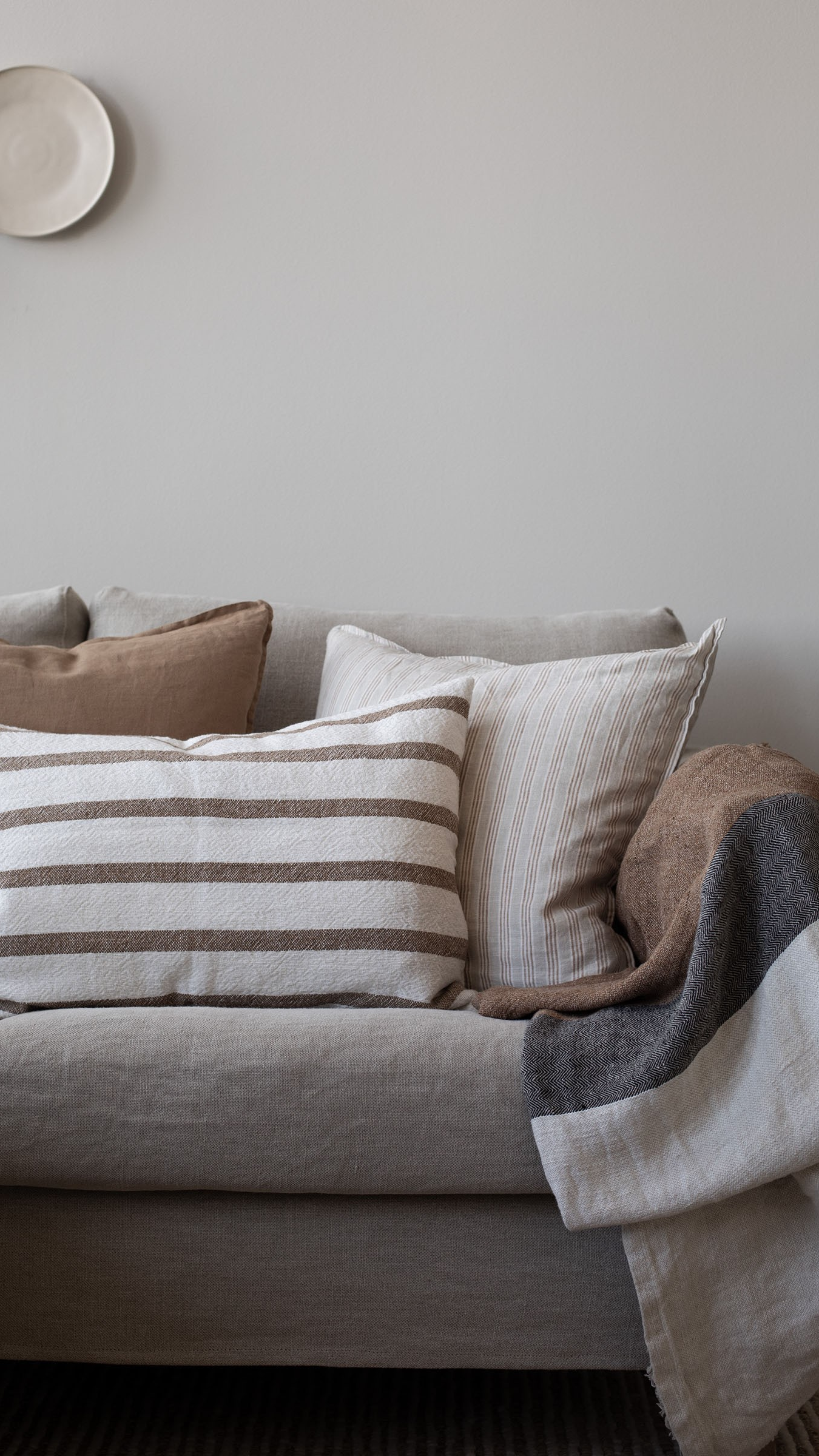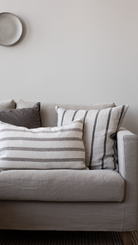 Gaston er et vakkert stripete putetrekk laget av en kombinasjon av bomull og tyngre lin. Putetrekket har en hvit grunnfarge og kommer i to forskjellige stripefarger, Hazelnut og Natural.