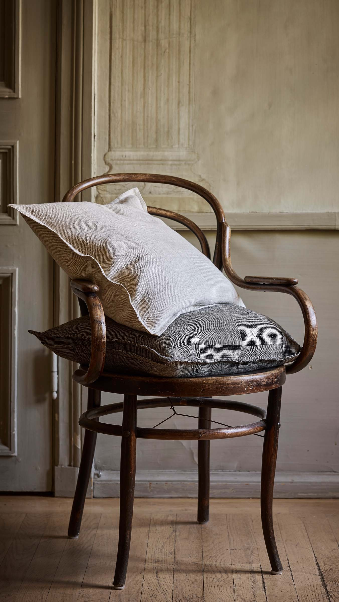Theo putetrekk er laget av lin og vevd i et rutemønster som skaper et eksklusivt uttrykk. Den kommer i to farger, beige og svart, noe som gjør den enkel å kombinere med andre tekstiler i hjemmet ditt. Putetrekket har skjult glidelås nederst og selges uten innerpute. Innerpute 50x50 selges separat.