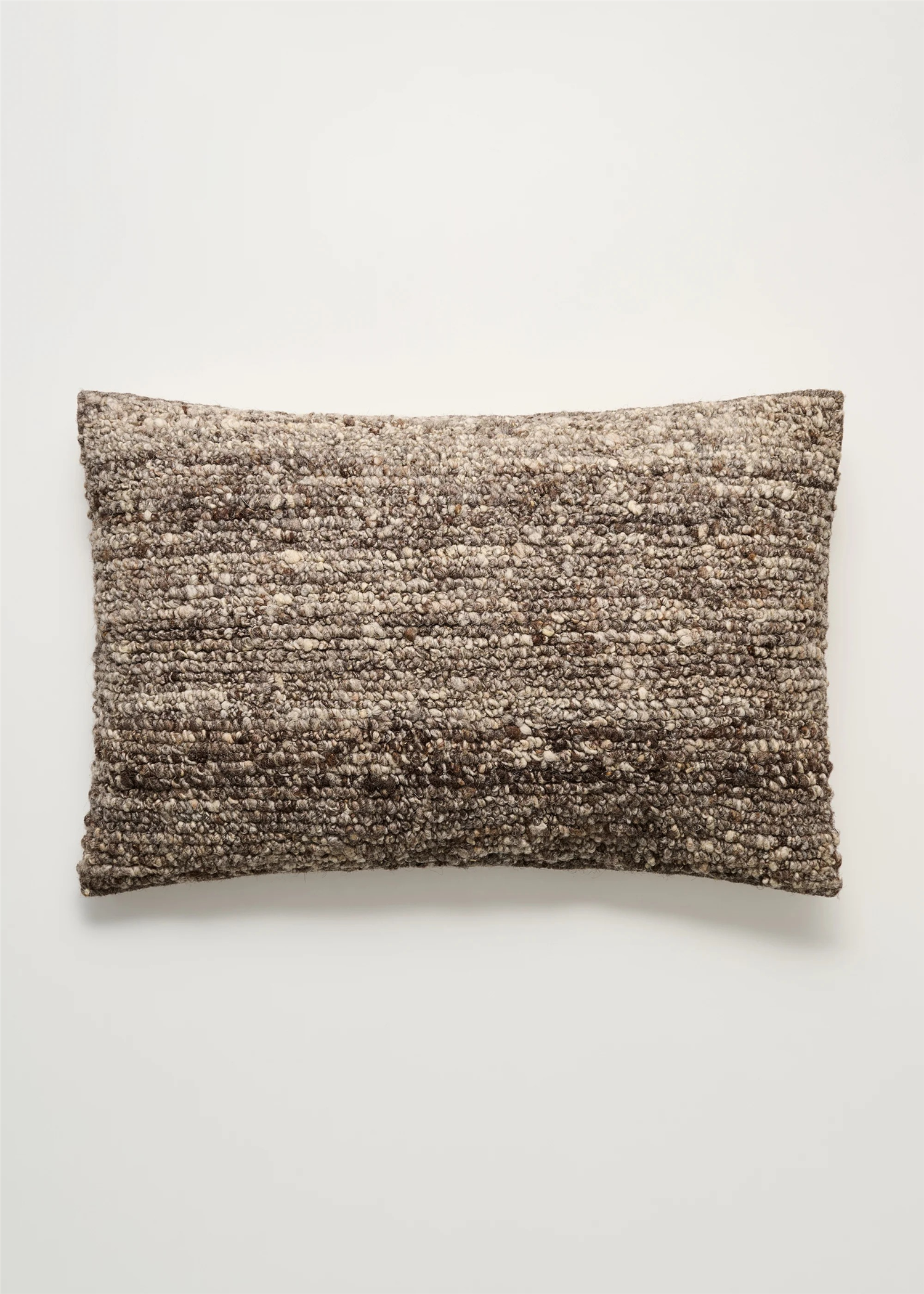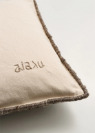 En håndknyttet, dekorativ pute laget av en raffinert blanding av bomull og tibetansk ull som gir en taktil tekstur. Designet i delikate, lette fibre med en håndbrodert aiayu-logo og konvoluttlukking.