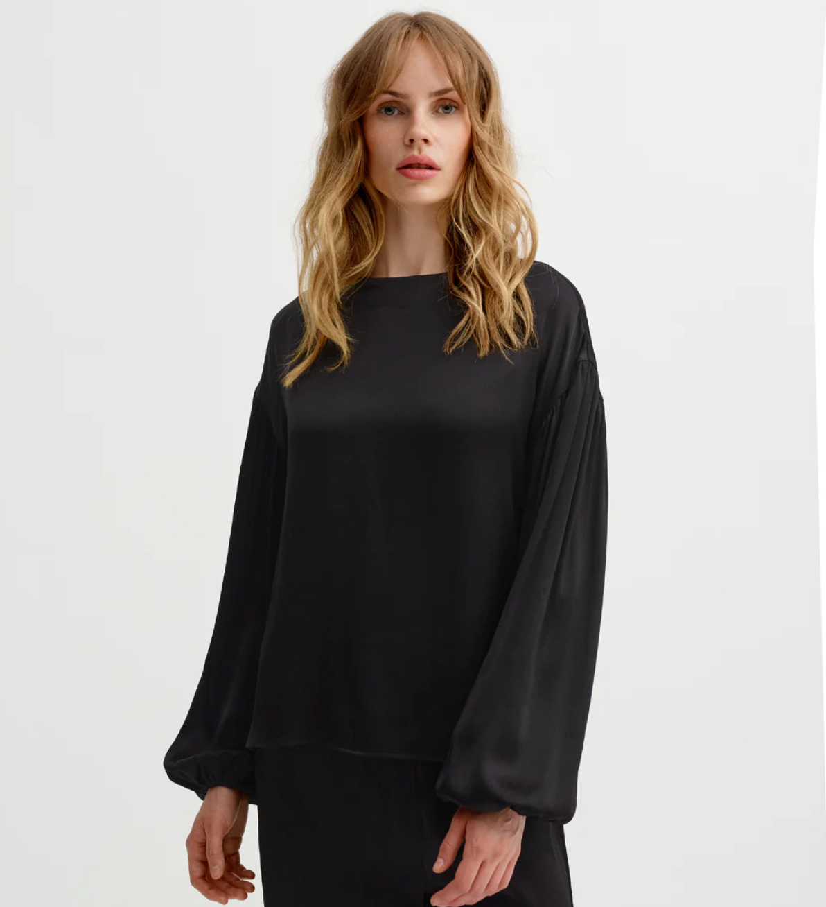Lisbon er laget av 100 % viskose med et luftig fall, lave skuldre og de perfekte voluminøse ermene som gir umiddelbar dramatikk (av den gode typen). Elastiske mansjetter holder dem på plass – så ingen sklir, glir eller dypper i suppe. Det er blusen som balanserer avslappet komfort med polert stil.