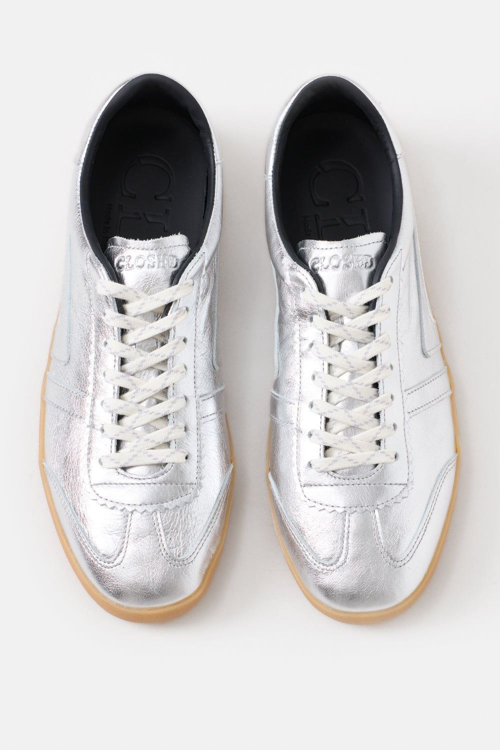 Håndlagde sneakers i italiensk skinn med metallisk finish og en elegant lav silhuett. Med vår signatur 33° vinkellapp og en polstret krage for optimal komfort. Presist håndverk og en gummisåle sikrer god brukbarhet i hverdagen. Laget i Italia