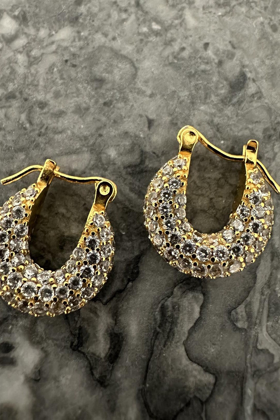 14k Gold Plated Brass Hoops, CUBIC ZIRCONIA, Gold Plated 925 Sterling Silver Ear Piece